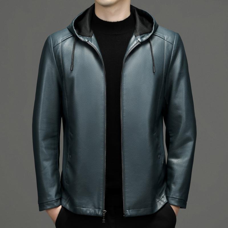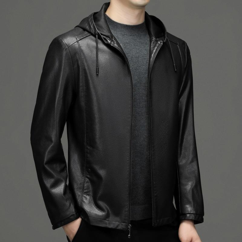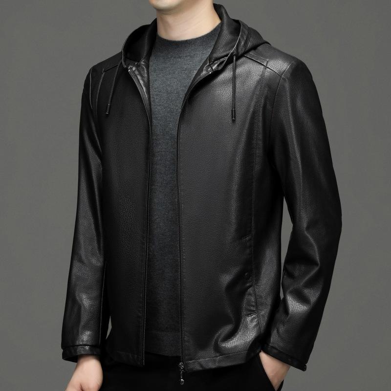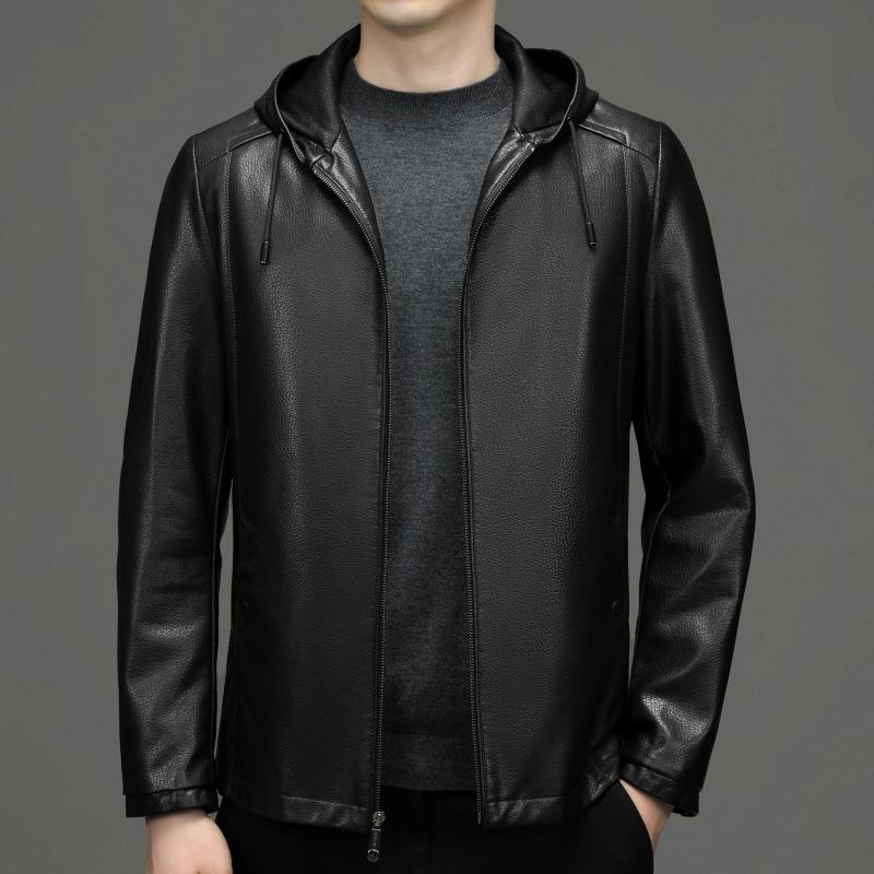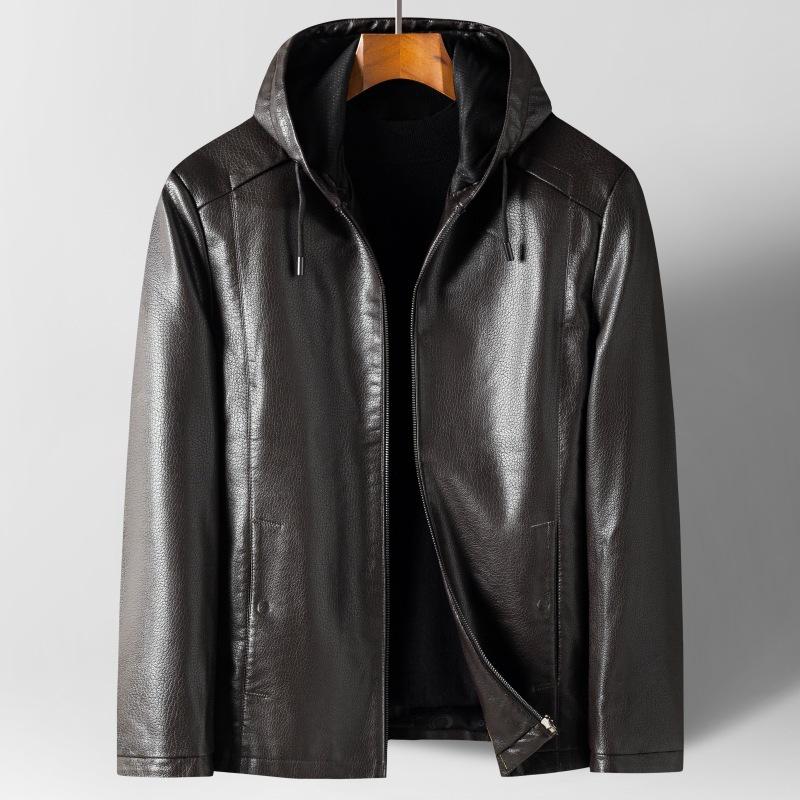 Кожаная куртка мужская красивая повседневная кожаная куртка с капюшоном для папы среднего возраста осенне-зимняя мужская куртка из овчины