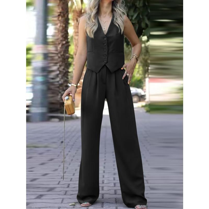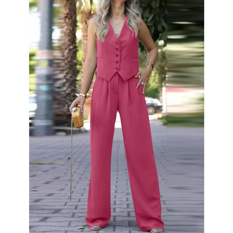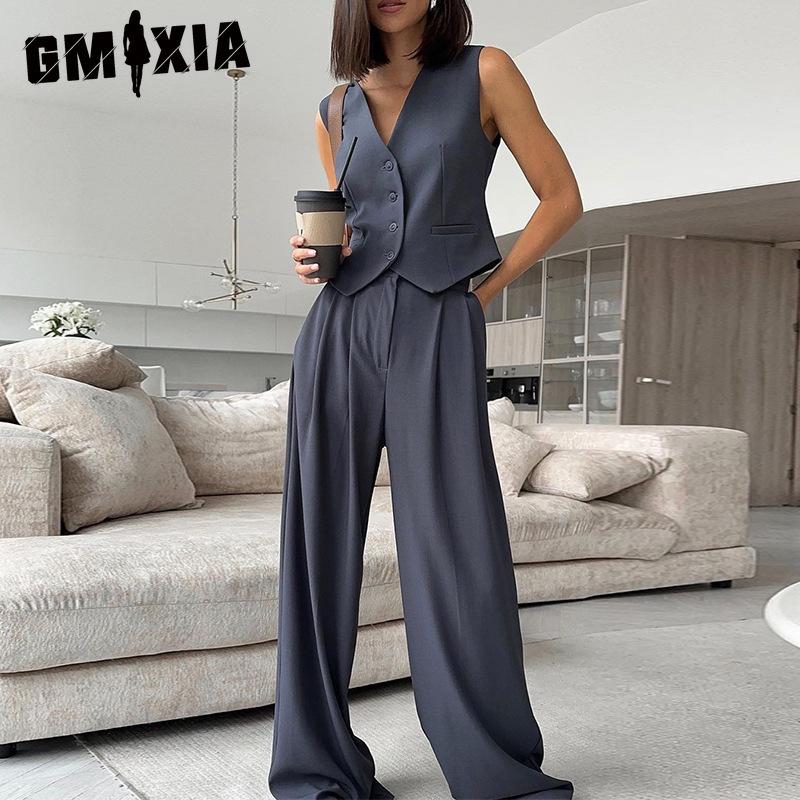 GMXIA Женская мода лето весна однотонный принт без рукавов V-образный вырез брюки брюки костюмы