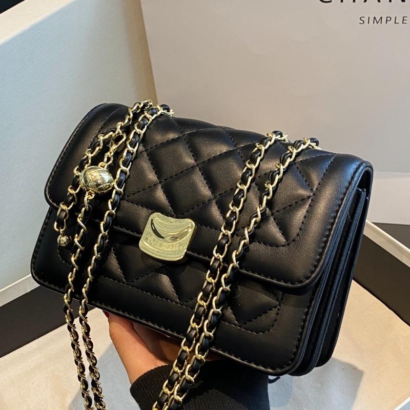 Новая однотонная женская сумка через плечо, универсальная клетчатая женская сумка через плечо, модная женская сумка с металлическим украшением, материал PU
