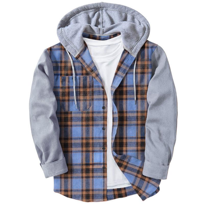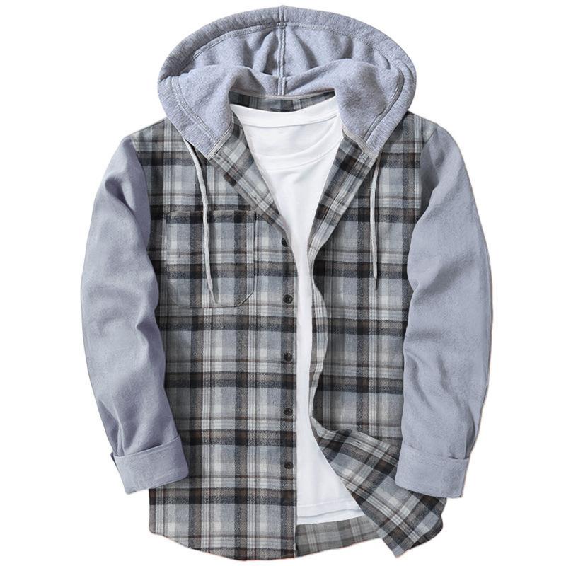 Мужская рубашка в клетку, контрастный цвет, длинный рукав, кардиган с капюшоном