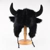 Большая черная плюшевая кепка Lei Feng из коровьего рога для мужчин и женщин, теплая зимняя защита ушей от ветра и холода