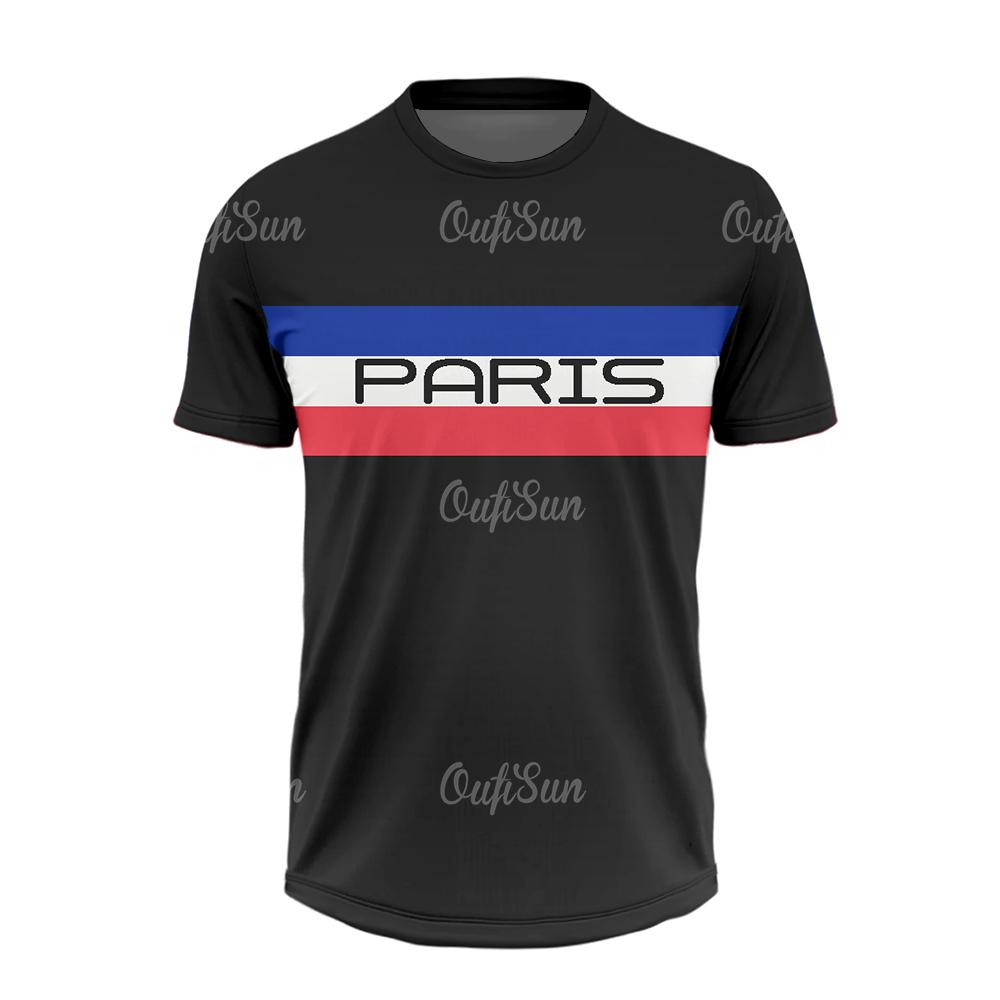 Летняя футболка для мужчин, повседневная, с коротким рукавом, с принтом парижских букв, топы для спорта на открытом воздухе, фитнес-одежда, быстросохнущие футболки