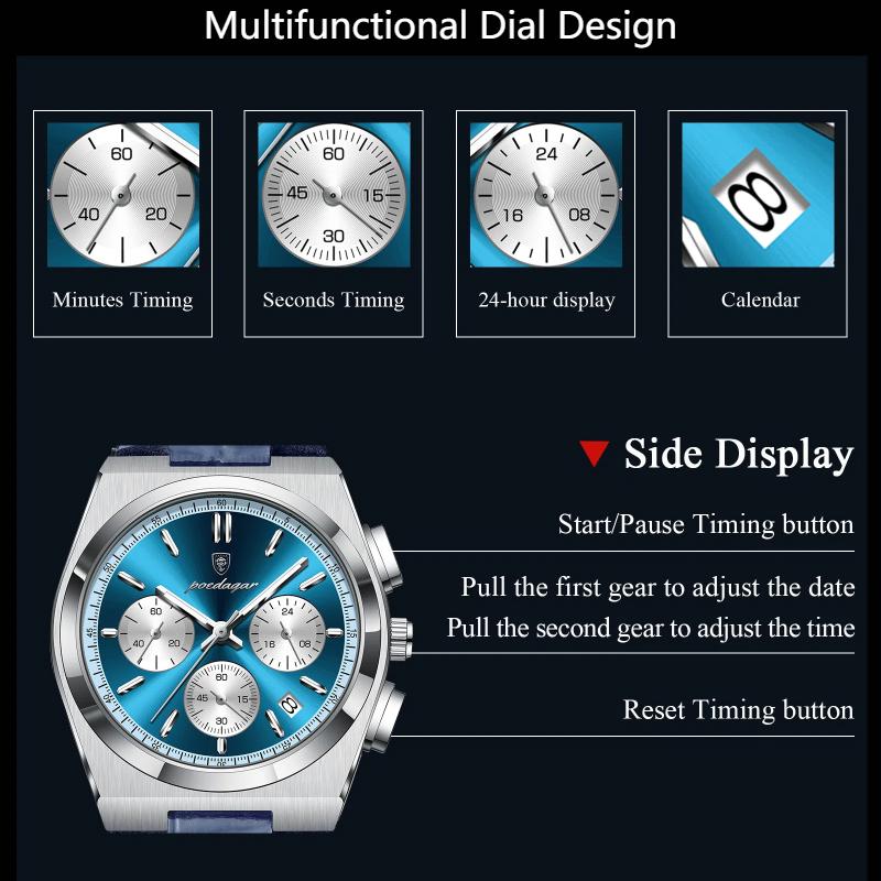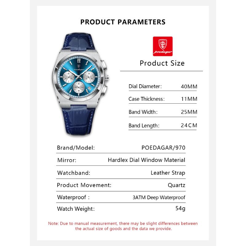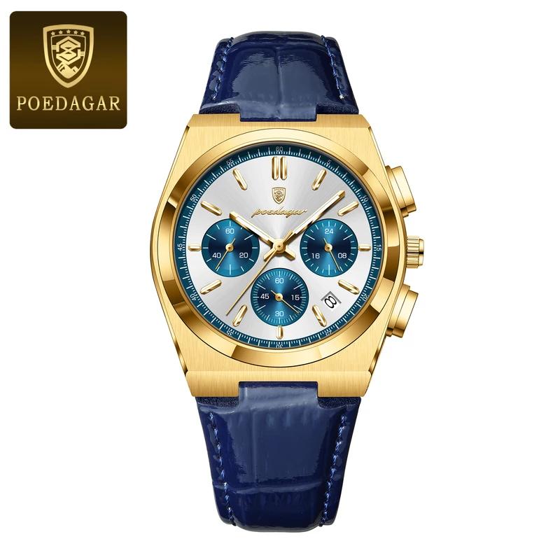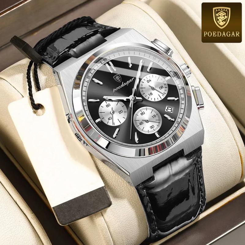 POEDAGAR Роскошные часы для мужчин, кожаные спортивные военные часы, водонепроницаемые, светящиеся, кварцевые, мужские часы с хронографом и датой