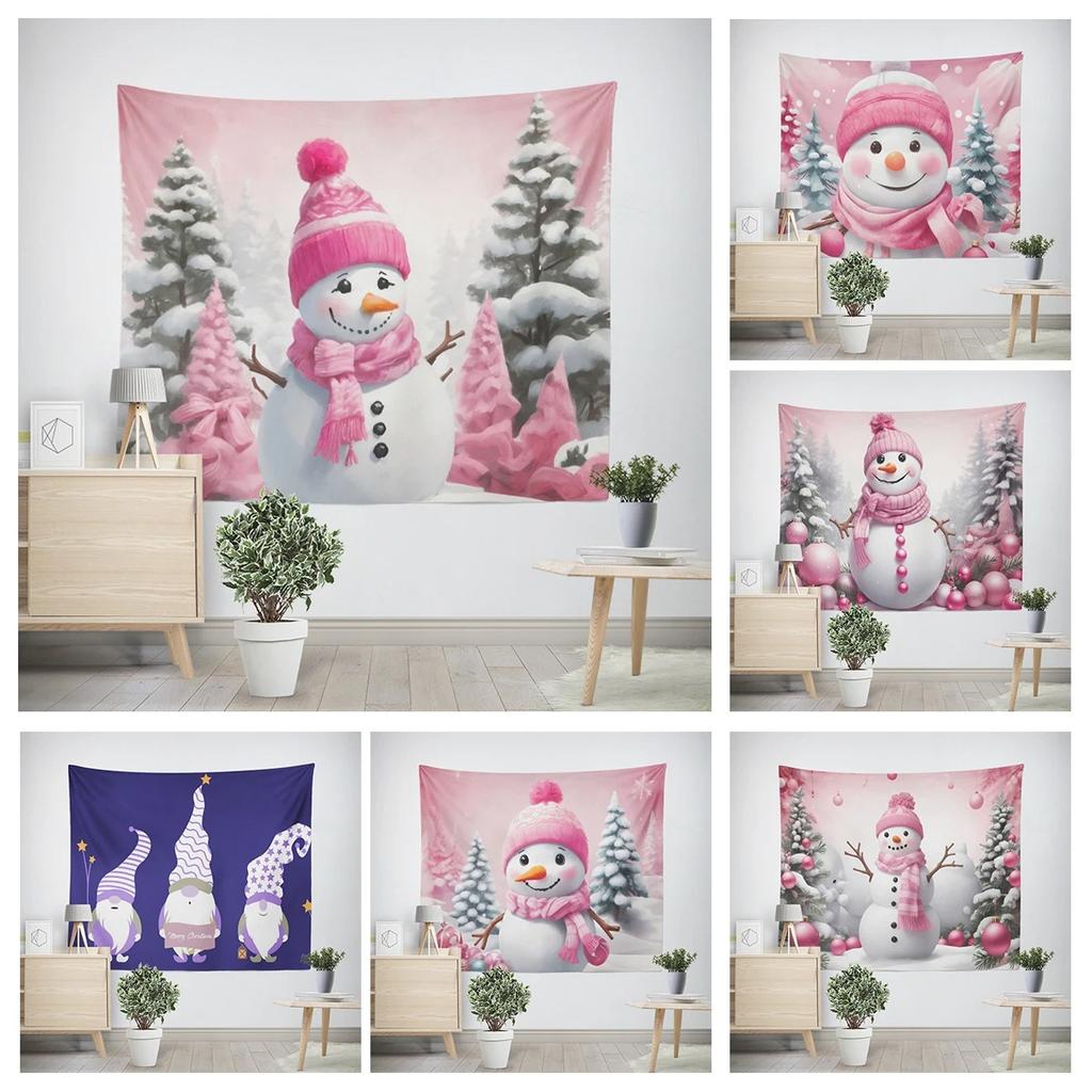 Рождество Новый год Розовый узор снеговика Гостиная Спальня Декоративный гобелен