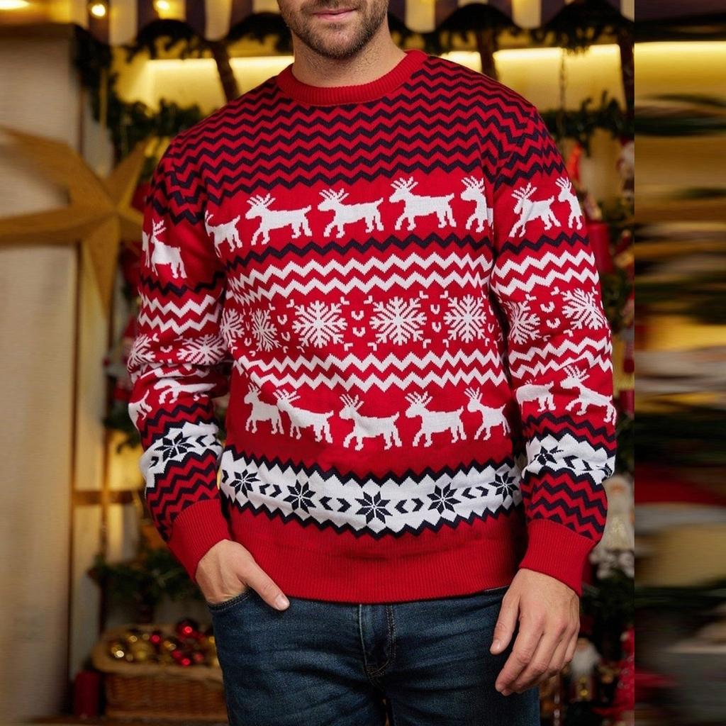 Мужской модный рождественский свитер, теплый пуловер, свитер с длинным рукавом и круглым вырезом