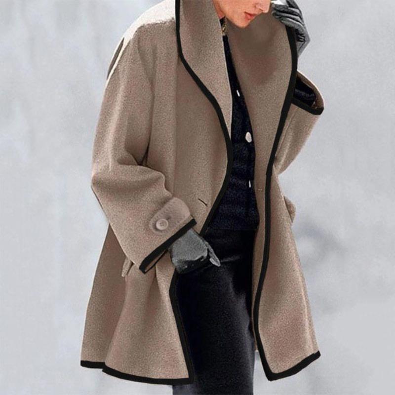 Женские элегантные тяжелые шерстяные пальто осень-зима повседневные пуговицы контрастный край верхняя одежда мода свободные лацканы теплая куртка