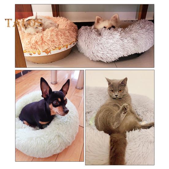Эта кровать в форме пончика с закругленными, приподнятыми краями обеспечивает ощущение безопасности и поддерживает голову и шею вашего питомца для спокойного сна.. Хлопковый наполнитель внутри помогает снять стресс, позволяя вашему пушистому другу быстрее успокоиться.. Нескользящее дно обеспечивает устойчивость и легкий доступ в кровать и вставать с нее.