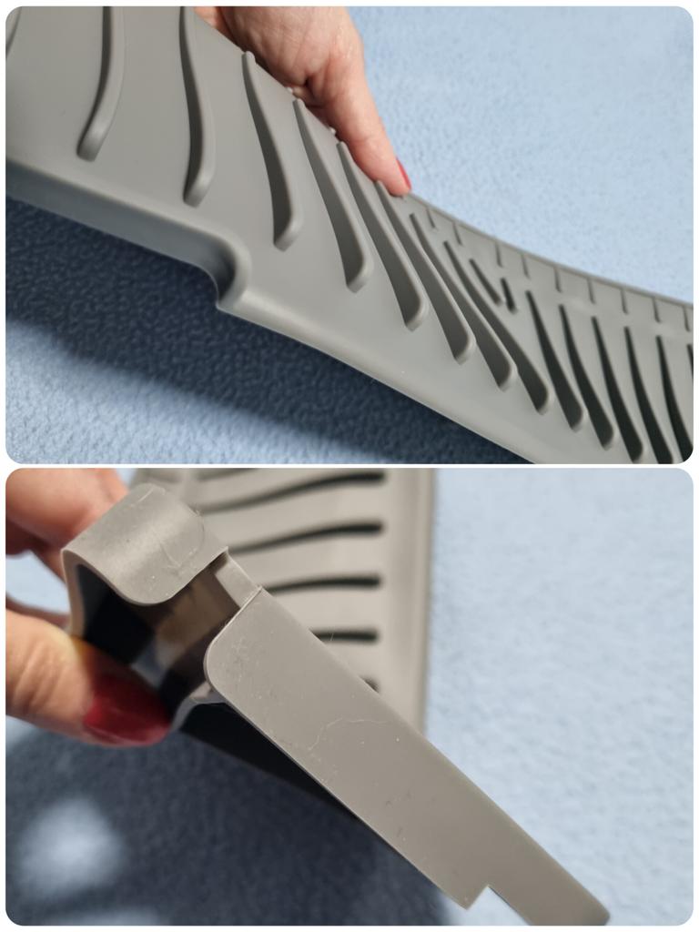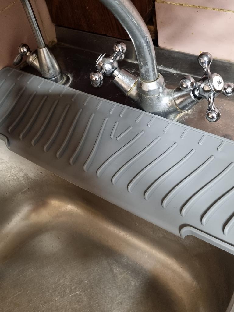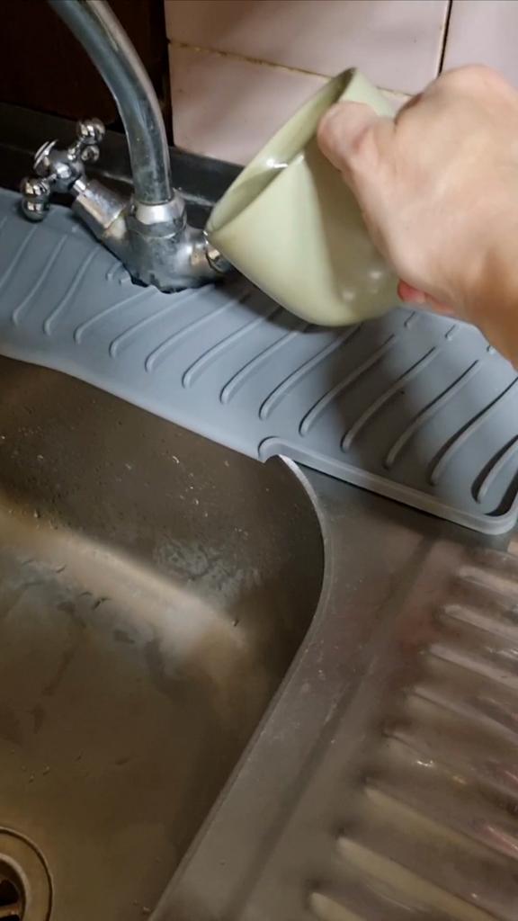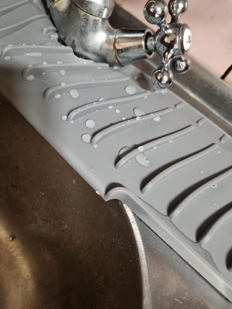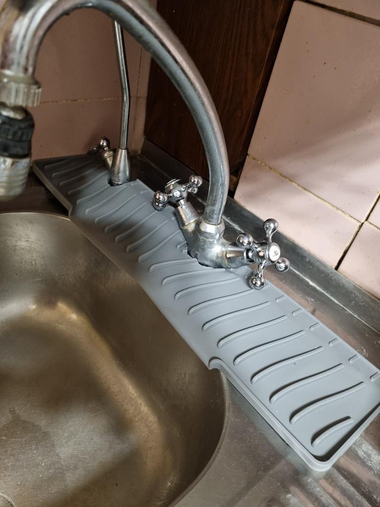 Силиконовый коврик на раковину под смеситель У меня металлическая мойка на кухне. И под смеситель постоянно постоянно летят брызги при мытье посуды. После высыхания образуются белёсые пятна, которые меня уже изрядно "достали". К сожалению, подходящего коврика с нужными мне отверстиями (для смесителя и крана на фильтр), я не нашла, поэтому заказала подходящий по длине, решив вырезать отверстия самостоятельно. Конечно, лучше подбирать коврик под нужные размеры, так как трудно вырезать отверстия идеально ровно. Но в моём случае, этот коврик лучше, чем ничего. Выполнен коврик из мягкого, гибкого силикона. Размеры: 45×10 см, высота дальней стороны 1,5 см, плавно уменьшается до пары миллиметров на стороне, спускающейся в раковину, высота бортиков по краям 1 см. Даже если специально лить воду на коврик (как я делаю на видео), вся вода моментально стекает. Для меня коврик оказался полезным. Могу рекомендовать. Личный промокод на скидку 5% на любые товары joom: F1UOZX3WKP. Приглашаю в мой телеграм-канал followmekanal.