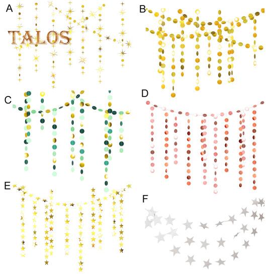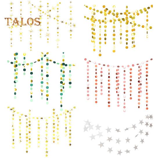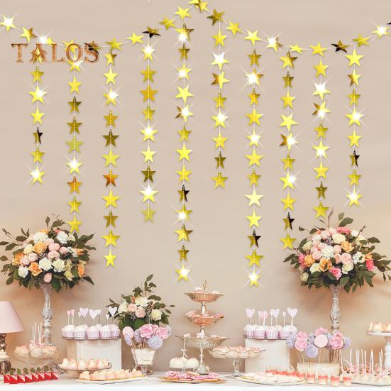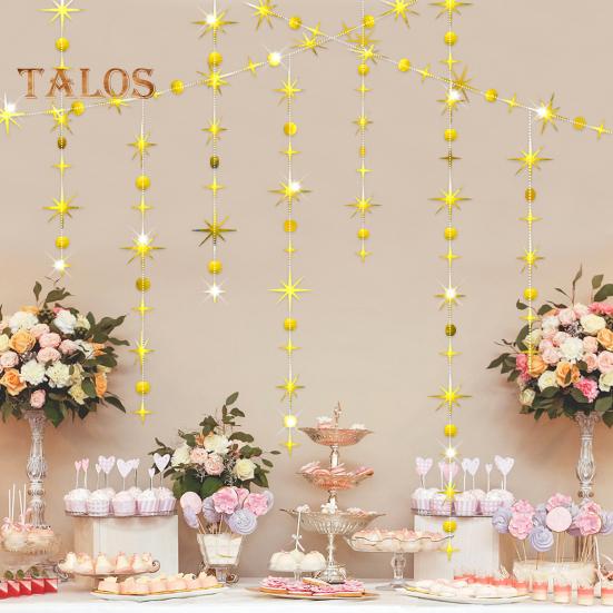 Добавьте блеска и элегантности вашему празднику с помощью этих подвесных украшений.. Изготовленные из надежной крафтовой бумаги, эти подвесные ленты предназначены для многократного использования и сшиты нитками для легкой сборки.. Блестки не осыплются, что гарантирует их повторное использование для следующего праздника.. Каждая точка или звезда имеет отражающий блеск и сверкающий эффект, что делает их идеальными для подвешивания под камином, разложения на столе или использования в качестве изящной занавески.. Благодаря наличию различных стилей вы можете использовать их по отдельности или комбинировать с баннерами, чтобы создать уникальное украшение, которое соответствует вашему вкусу.