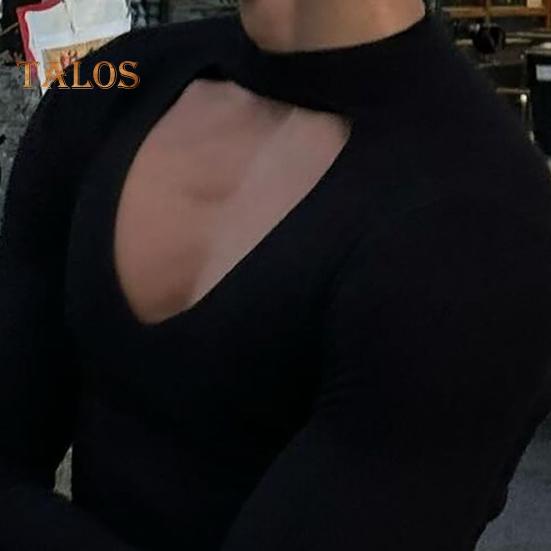 Модное сочетание: Этот черный топ с длинными рукавами — обязательная вещь, которую легко сочетать с джинсами, повседневными брюками или костюмными брюками.. Его классический стиль и облегающий силуэт гарантируют гармоничный внешний вид с любым нарядом.
