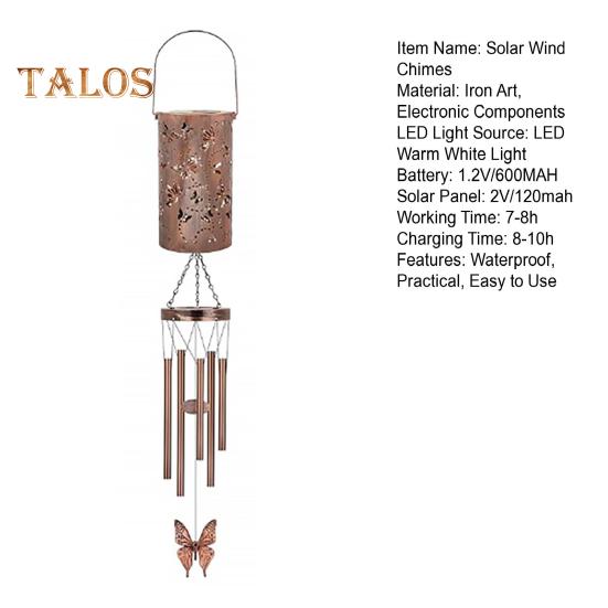 Добавьте яркости в свой сад, на террасу, балкон или окна с помощью наших съемных уличных колокольчиков на солнечных батареях.. Оснащен полым солнечным фонарем в форме бабочки и 5 прочными звуковыми трубками с удобными для подвешивания крючками для легкой установки.