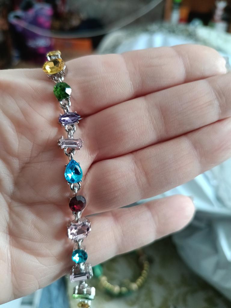 🌺 Симпатичный браслет 🌺Размер 16+5 см 🌺Браслет выполнен аккуратно, камешки хорошо закреплены.Замочек -карабин, работает отлично 🌺Браслет изготовлен из медного сплава и имеет серебряное покрытие, камешки все разноцветные и разного размера. Смотрится очень красиво и достойно!👍😘😘😘