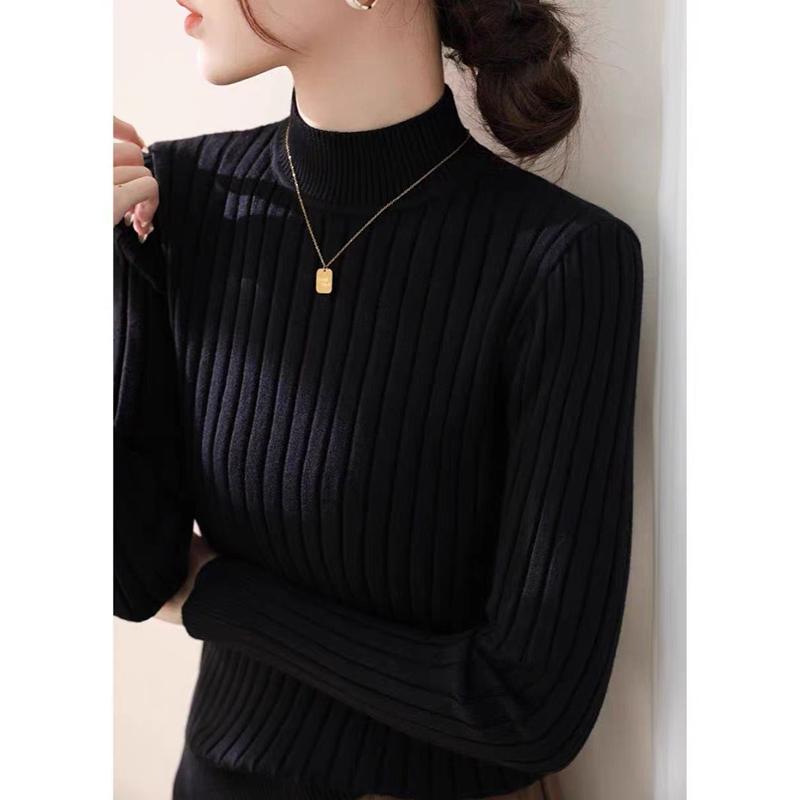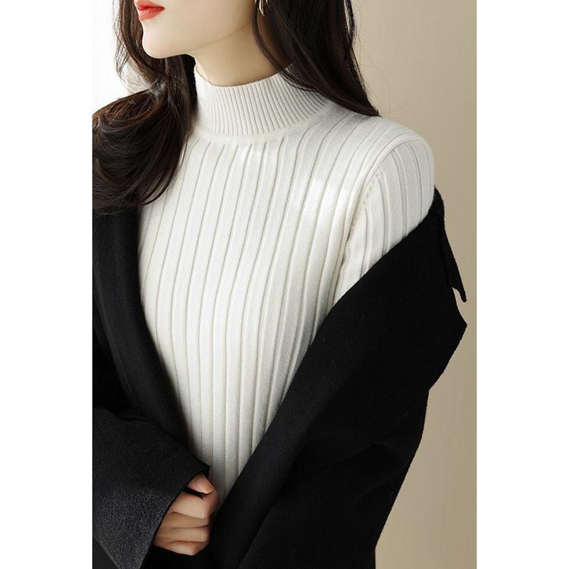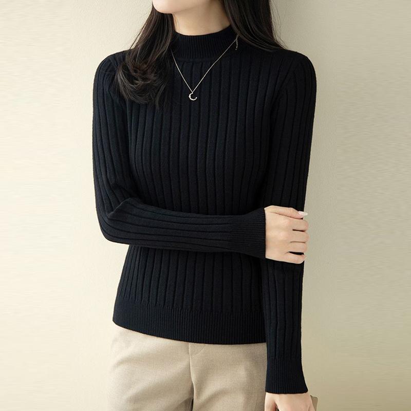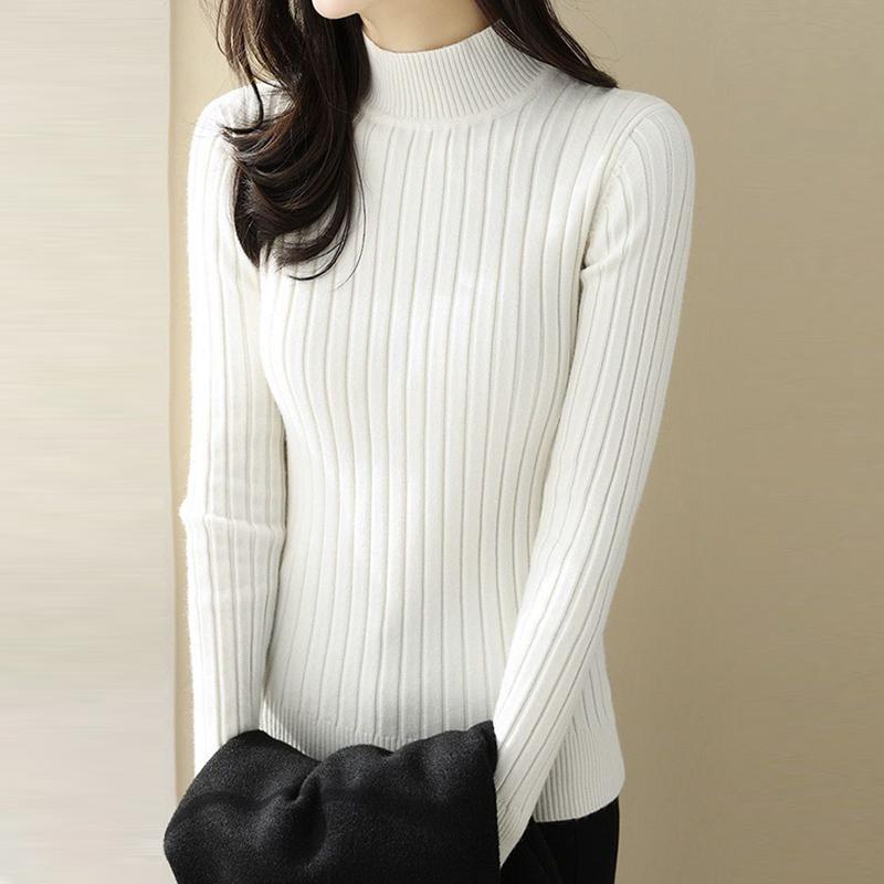 Зимний однотонный облегающий вязаный свитер для женщин, модный полувысокий ворот с длинными рукавами, свитера для женщин, элегантный повседневный однотонный джемпер 25531