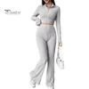 Этот комплект из двух предметов, созданный для того, чтобы подчеркнуть ваш силуэт, состоит из облегающего топа с длинными рукавами и подчеркивающих фигуру широких брюк.. Повседневный, но изысканный дизайн подходит для разных типов фигур, позволяя вам с уверенностью продемонстрировать свое уникальное очарование.