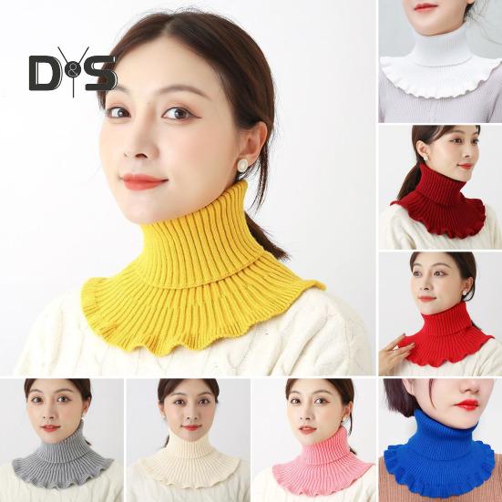 Женский искусственный шарф с высоким воротником, ребристая текстура, отделка оборками, однотонный вязаный воротник, осень-зима, утолщенный теплый искусственный воротник — купить товар онлайн с бесплатной доставкой по всему миру!