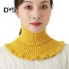 Женский искусственный шарф с высоким воротником, ребристая текстура, отделка оборками, однотонный вязаный воротник, осень-зима, утолщенный теплый искусственный воротник