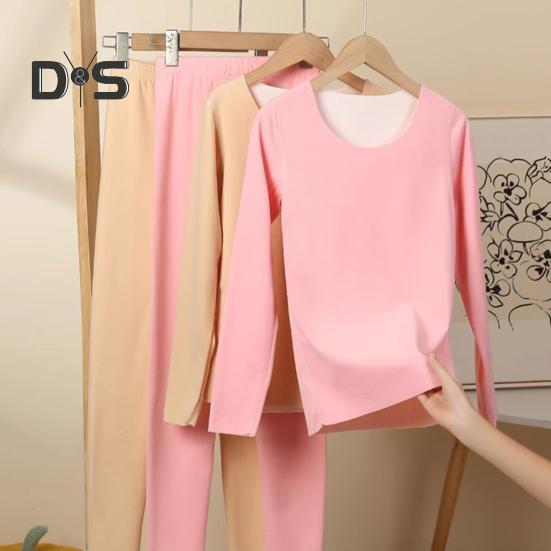 Комплект из 2 предметов, зимний женский термобелье, бесшовный, с круглым вырезом, с длинным рукавом, теплый, облегающий, высокоэластичный, для холодной погоды, пижамный комплект, домашняя одежда, одежда для сна
