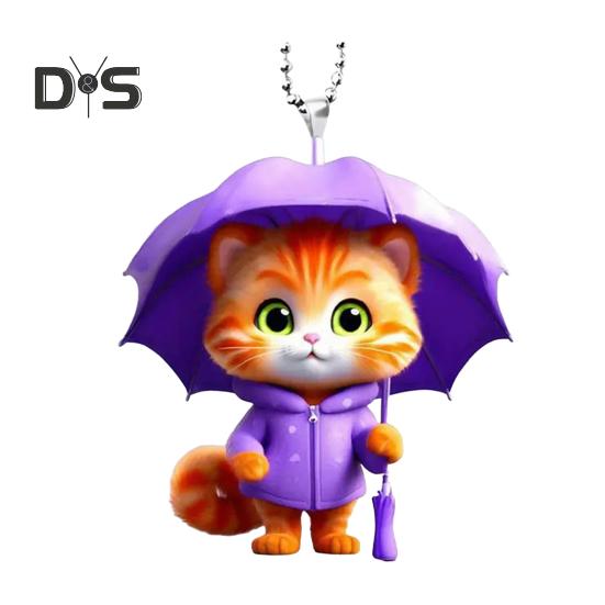 Подвеска в виде зонтика в виде кота на зеркало заднего вида автомобиля, 2D акриловое украшение для автомобиля, мультяшное подвесное украшение для интерьера автомобиля, ключей для окон дома
