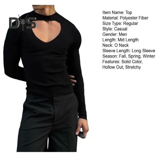 Этот универсальный черный топ с длинными рукавами просто необходим в вашем гардеробе.. Приталенный крой идеально сочетается с джинсами, повседневными брюками или костюмными брюками.. Полый вырез добавляет нотку модного стиля.. Изготовленный из мягкой и дышащей полиэфирной ткани, этот топ удобен для ношения в течение всего дня..