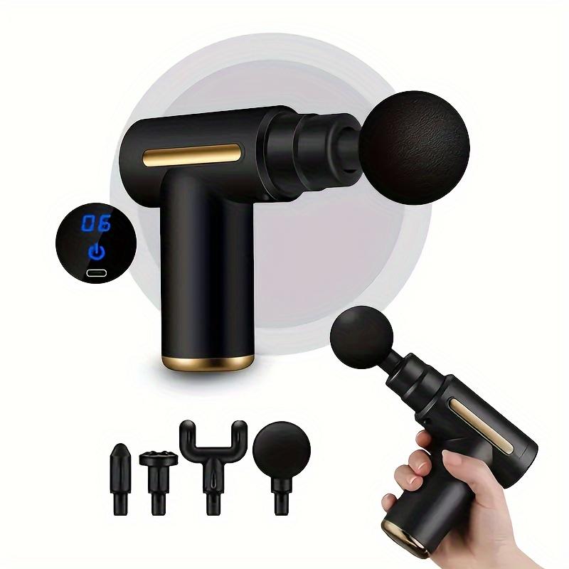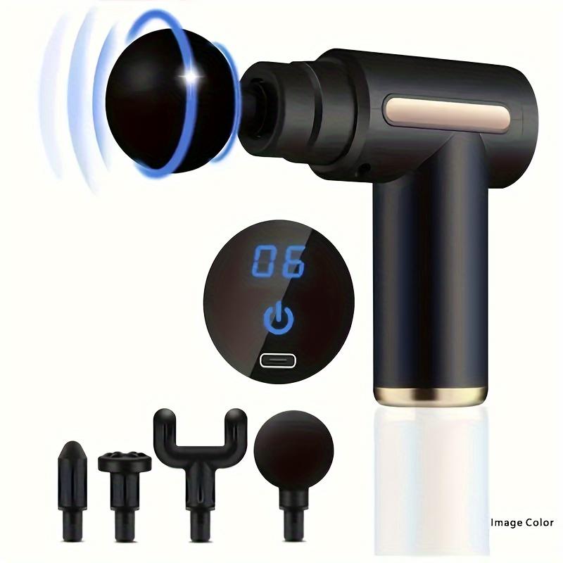 Портативный пистолет для глубокого массажа тканей с 4 насадками - перезаряжаемый через USB литиевый аккумулятор емкостью 1200 мАч