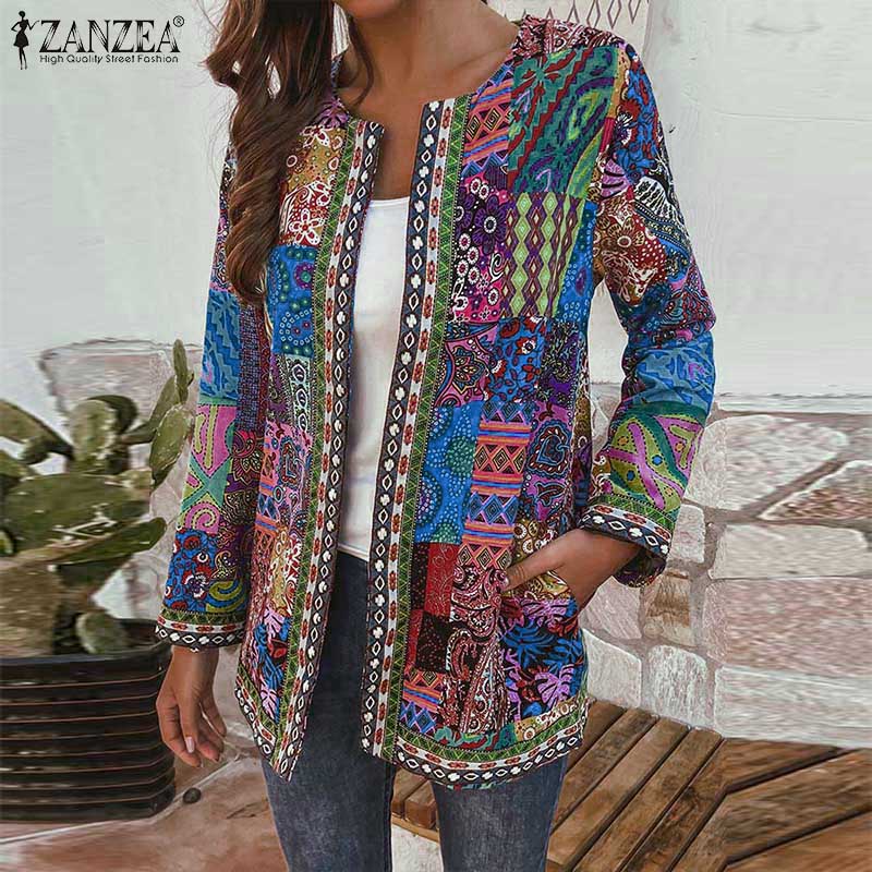 ZANZEA Этнический принт Повседневный длинный рукав Женский кардиган Тонкий Верхняя одежда — купить товар онлайн с бесплатной доставкой до всему миру!