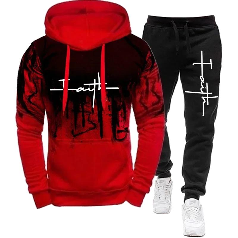 Женский комплект с капюшоном Faith Print, повседневный спортивный свитер и спортивные штаны, комплект из двух предметов, индивидуальный размер плюс — купить товар онлайн с бесплатной доставкой по всему миру!