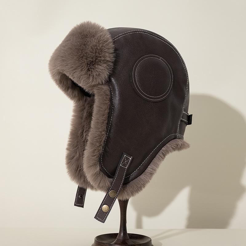 Мужская кожаная кепка Lei Feng, утолщенная плюшевая защитная кепка для защиты ушей, на осень и зиму, для езды на велосипеде, теплая, для электромобиля, для ветра и снега, для холода, водонепроницаемая