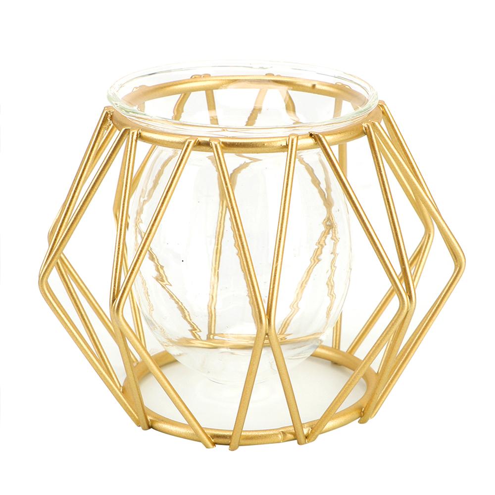 Nordic Golden Glass Vase Iron Line Vase Metal Home Decor Modern Plant Holder Terrarium Geometric Hydroponic Plant Flower