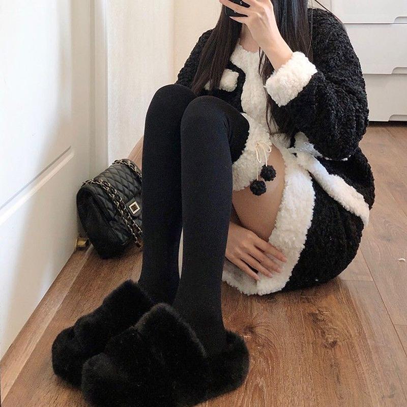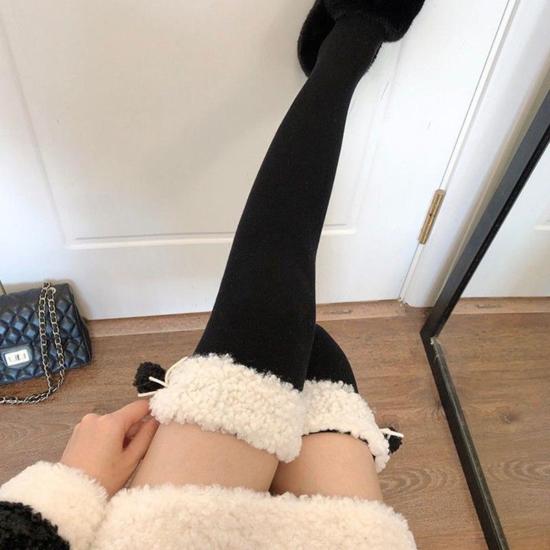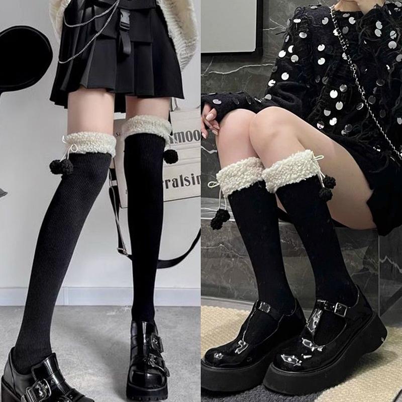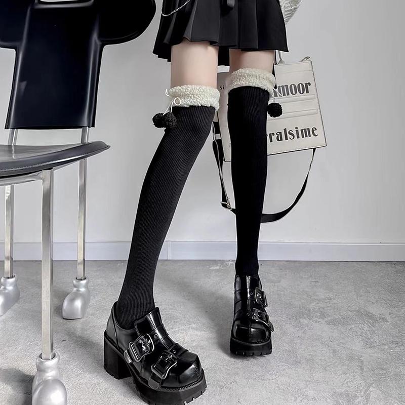 Гольфы из овечьей шерсти, зимние теплые длинные чулки, милые плюшевые носки для девочек, однотонные чулки Jk