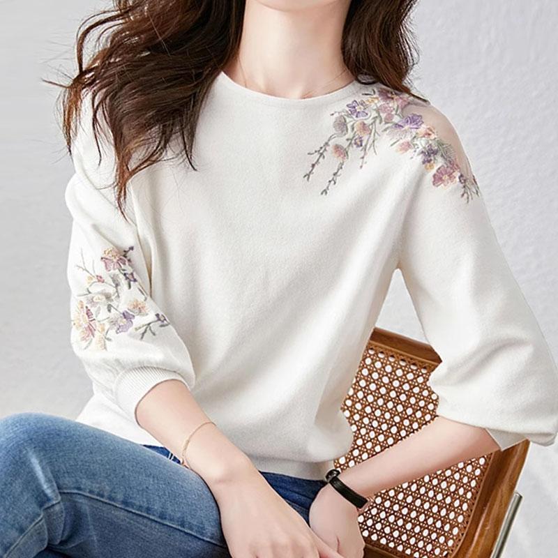 Модные летние вязаные свитера с круглым вырезом, пуловеры, женские топы, вышитые цветами, белый женский свитер JJ20 — купить товар онлайн с бесплатной доставкой по всему миру!