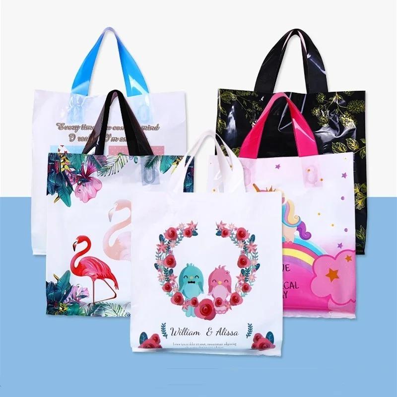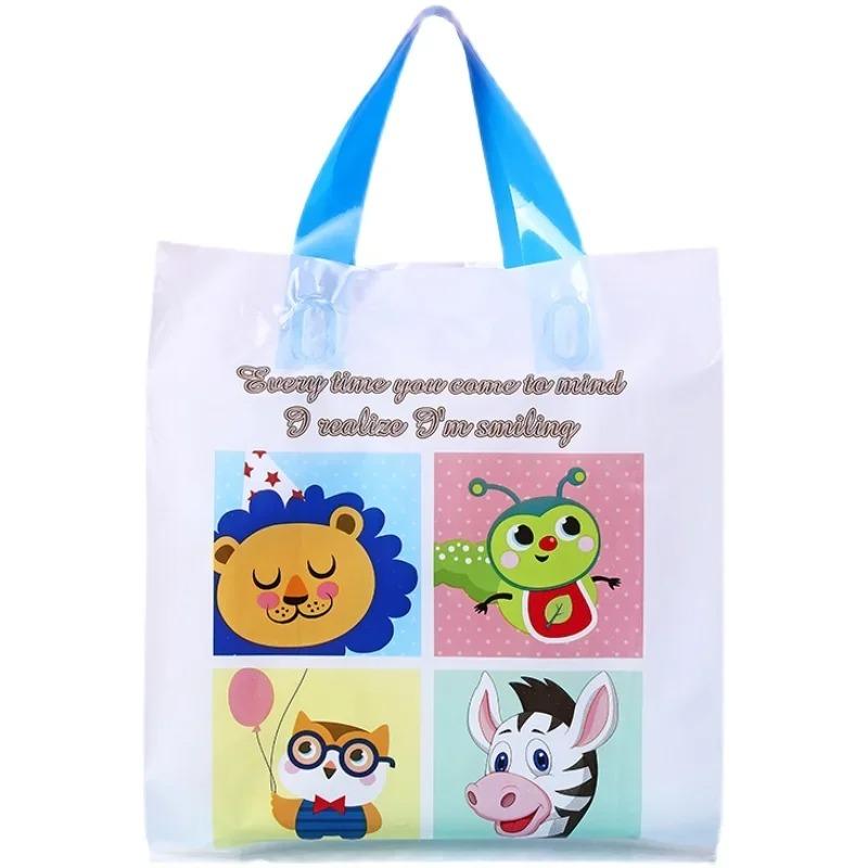 50 шт., мультяшная пластиковая сумка для рынка, торгового магазина, вертикальной тарелки, упаковочные сумки для одежды, праздничные подарочные утолщенные сумки для хранения