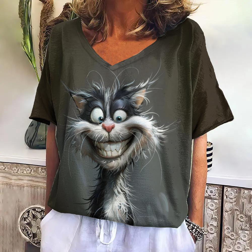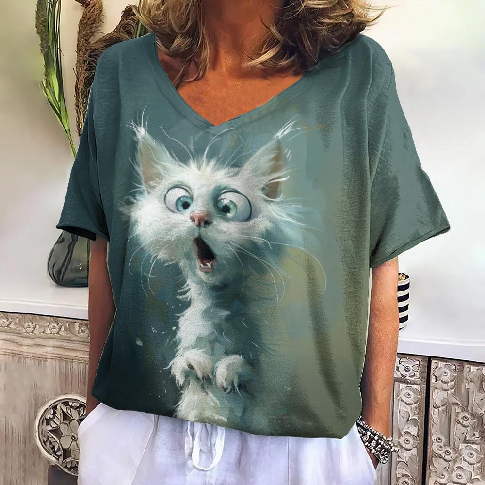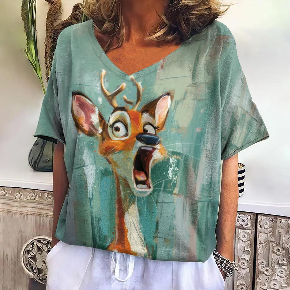 Плюс размер 5XL Harajuku Animal Print Женские футболки Летняя повседневная футболка с коротким рукавом Женская одежда с V-образным вырезом Свободный пуловер Необычный топ