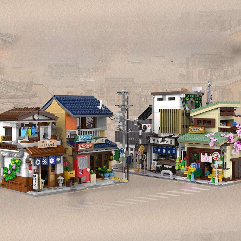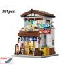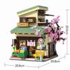 Японский Street View Bricks Shop LED Японский паровой домик с булочкой Архитектура Строительные блокиИгрушки