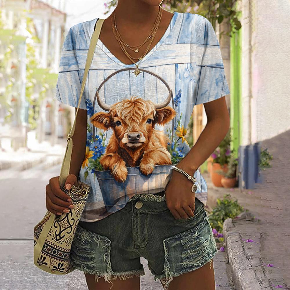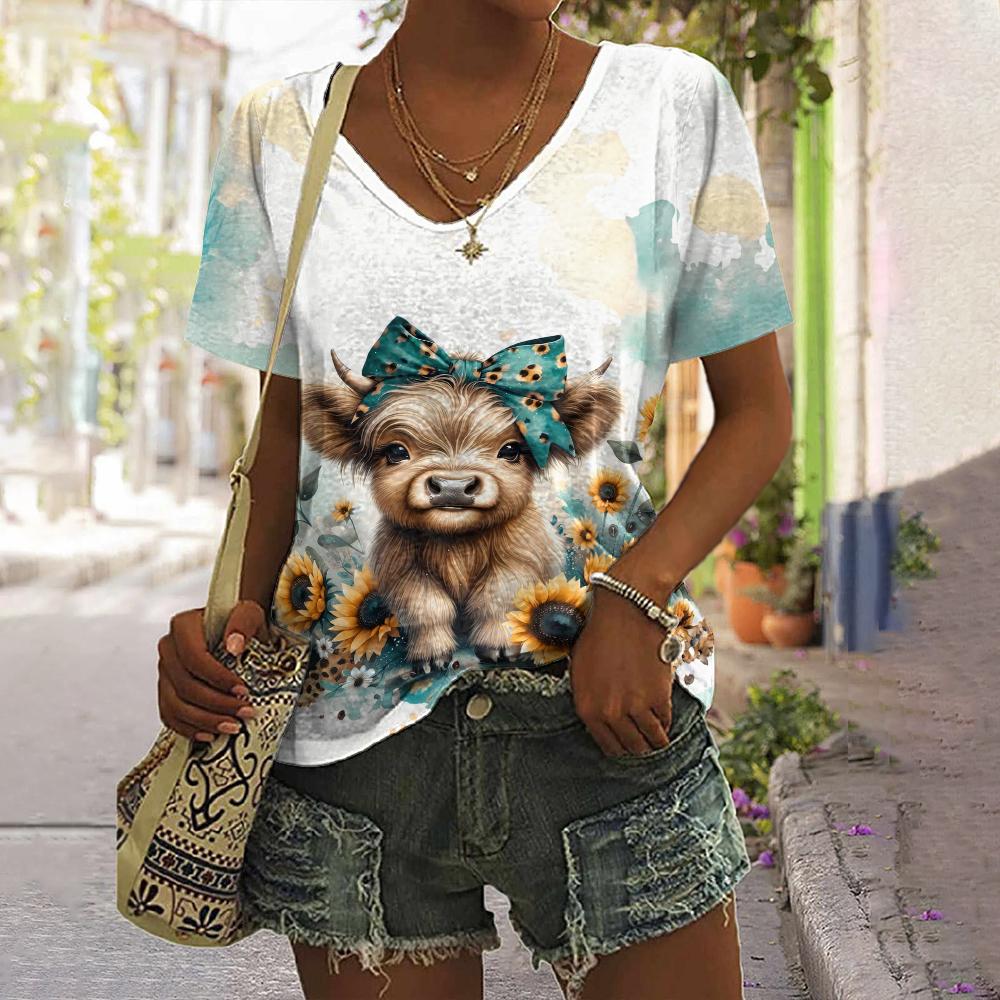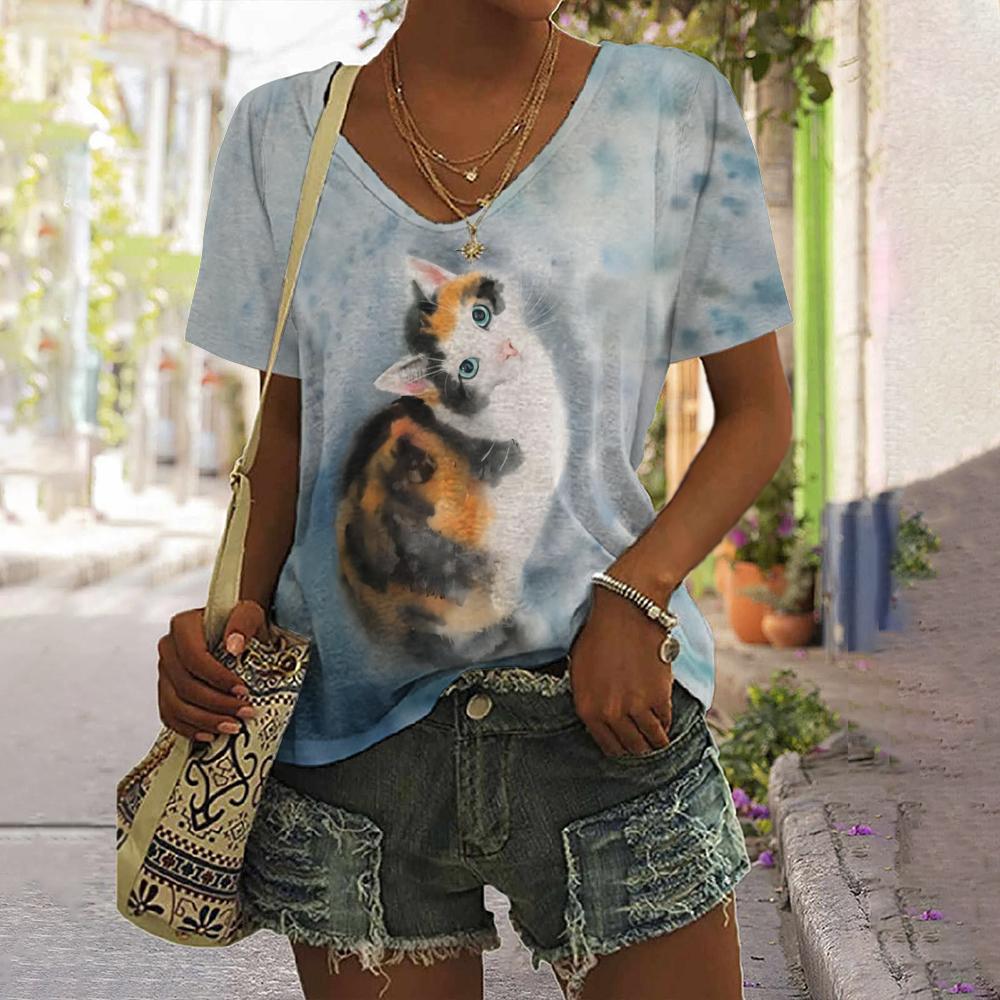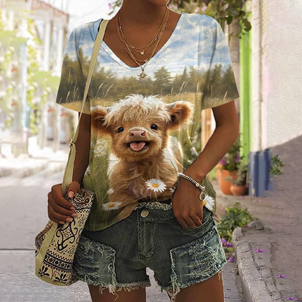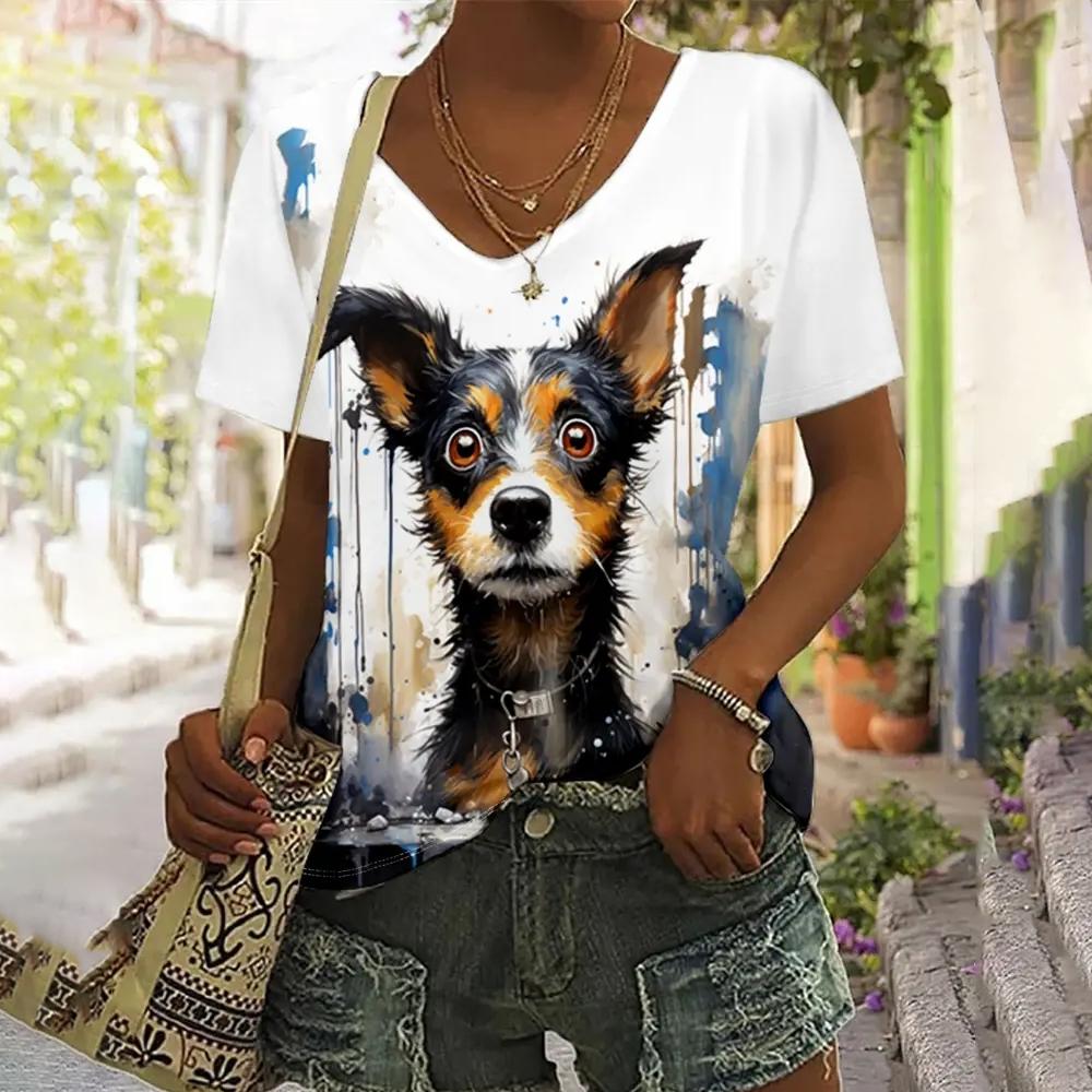2024 Женская футболка Летняя футболка с принтом собаки из мультфильма Плюс Размер Женская одежда Негабаритная дизайнерская рубашка с коротким рукавом Женская v-образным вырезом