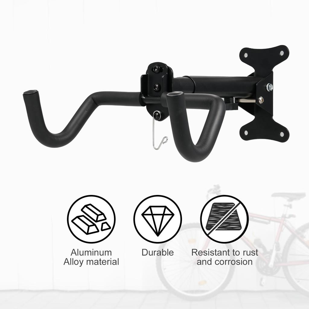 Конструкция из алюминиевого сплава: Настенное крепление для велосипедов изготовлено из высококачественного алюминиевого сплава, который одновременно легкий и прочный.. Этот материал обеспечивает устойчивость вешалки к ржавчине и коррозии, что делает ее пригодной для использования как внутри, так и снаружи помещений.