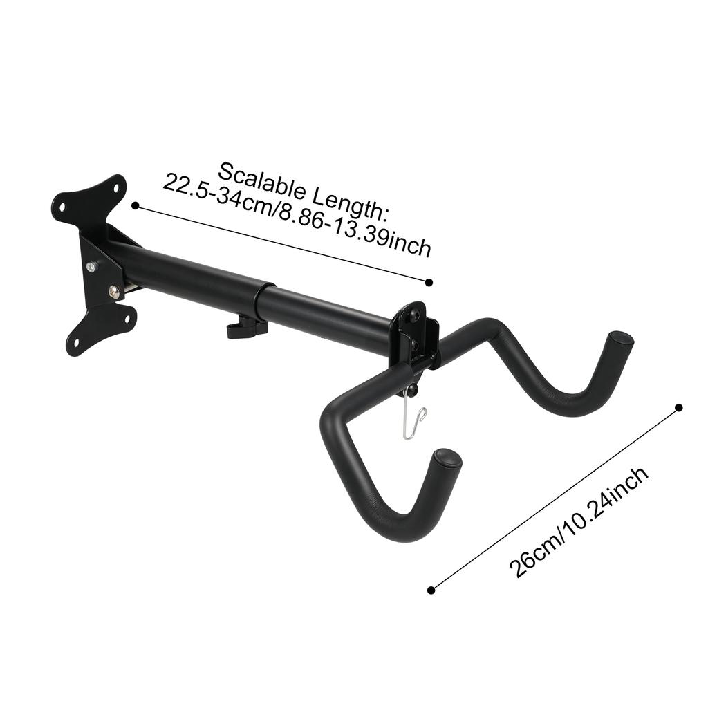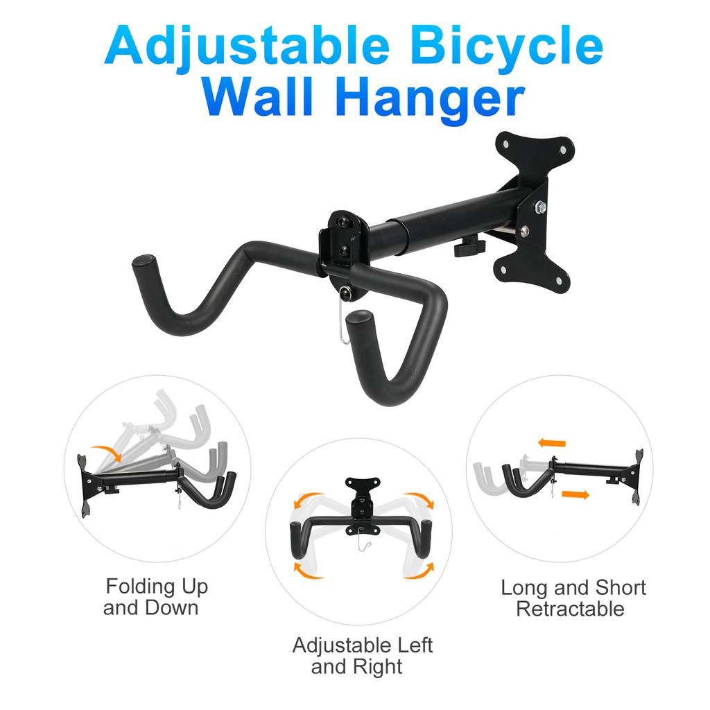 Регулируемый дизайн: Вешалка полностью регулируется, что позволяет складывать ее вверх и вниз, регулировать влево и вправо, а также увеличивать или уменьшать длину.. Такая гибкость позволяет легко разместить различные типы велосипедов, обеспечивая надежное и экономящее место решение для хранения.