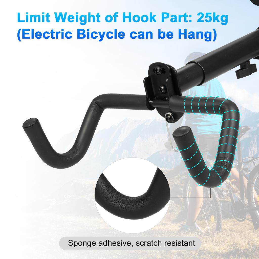 Вес Емкость: Крюковая часть вешалки выдерживает нагрузку до 25 кг, обеспечивая безопасный и надежный способ подвешивания тяжелых велосипедов.. Высокая грузоподъемность гарантирует надежное хранение даже самых тяжелых велосипедов, что дарит вам спокойствие.
