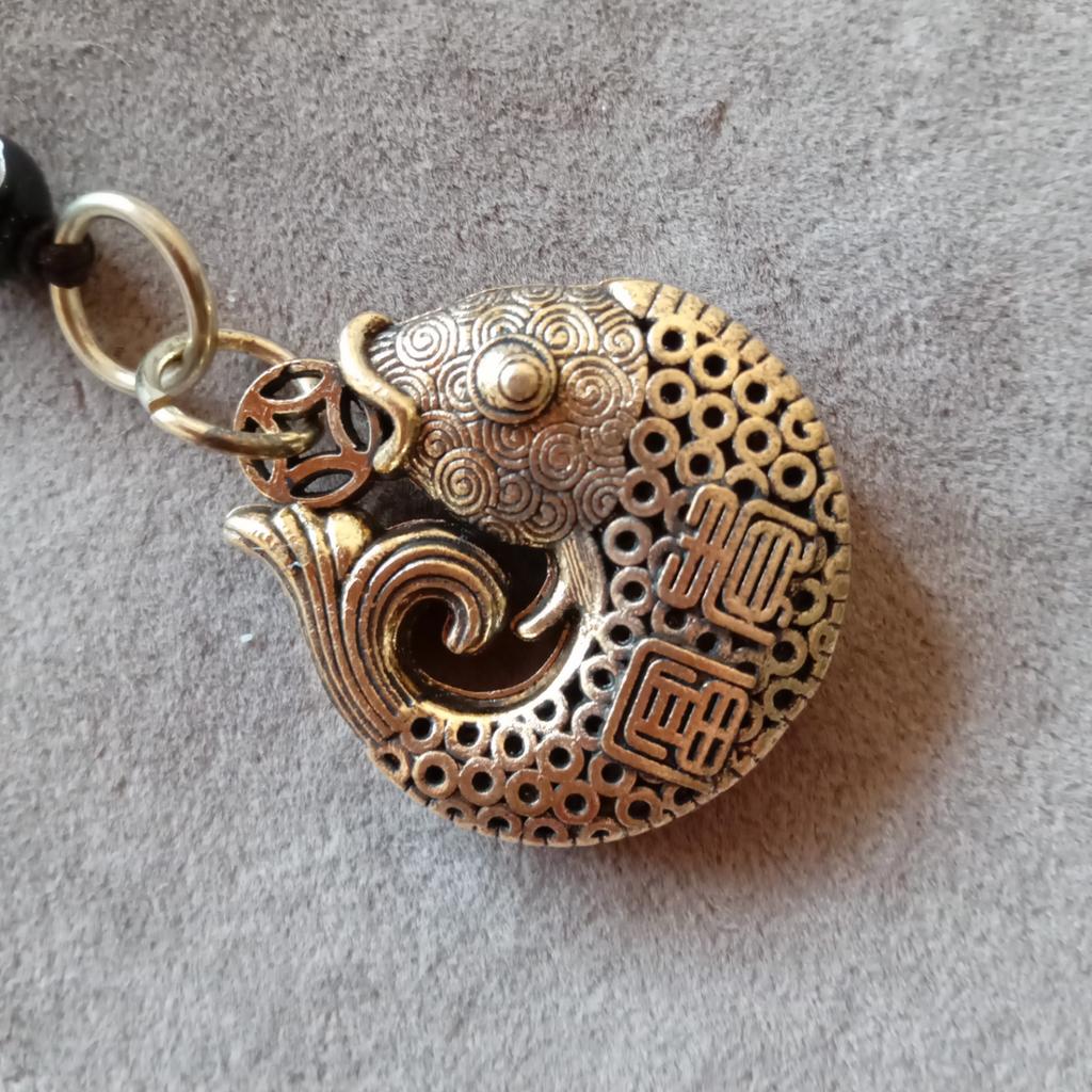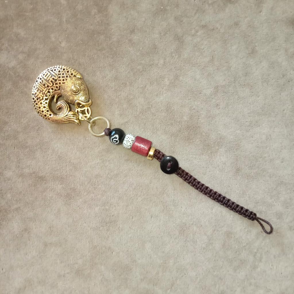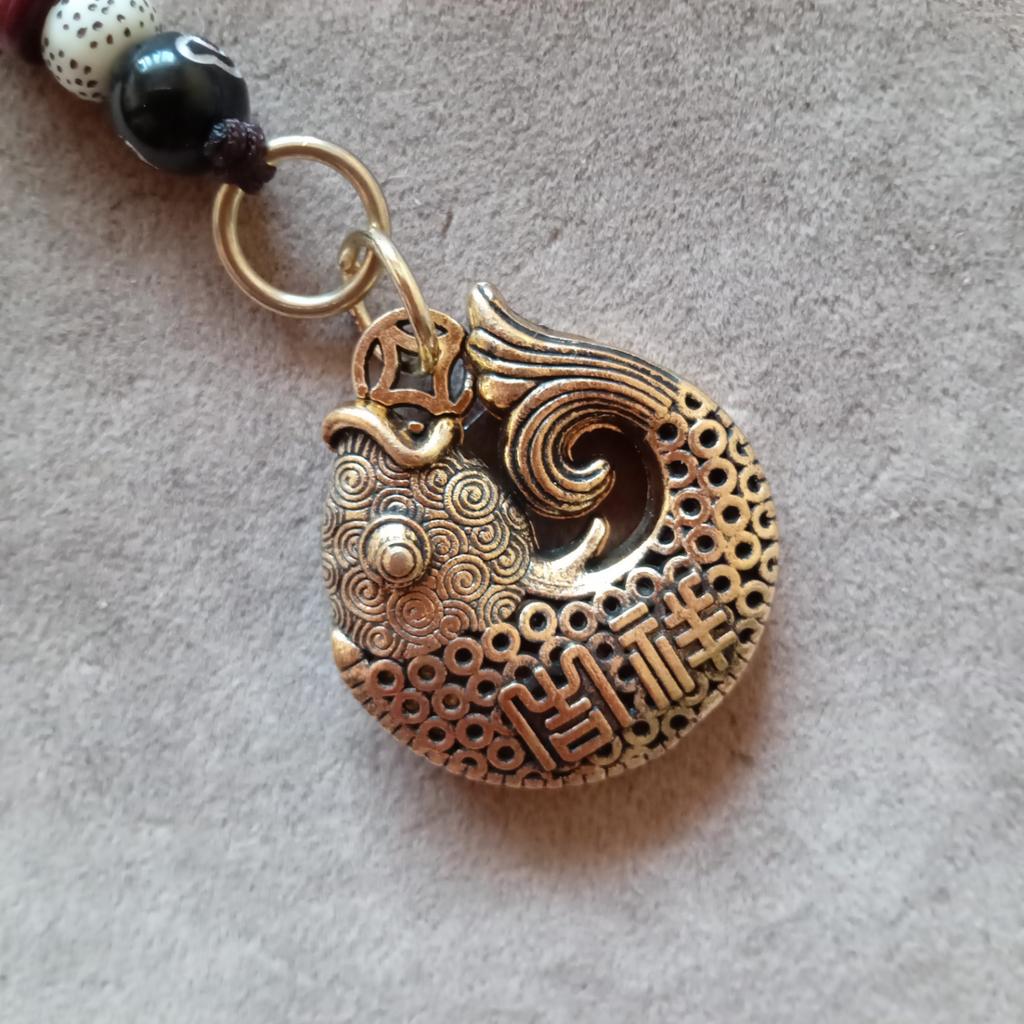 1 шт., плетеная вручную веревка из чистого латунного металла, благоприятная золотая рыбка, ретро-подвеска для ключей от автомобиля, полый дизайн, кулон, креативный подарок для мужчин
