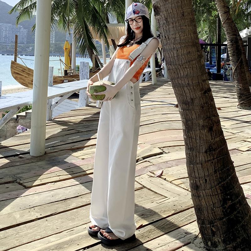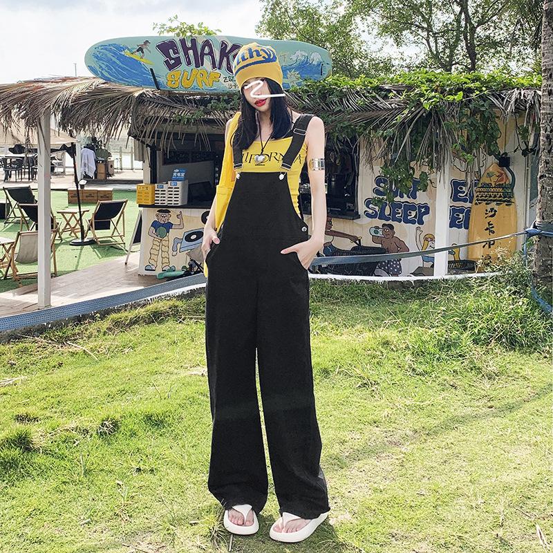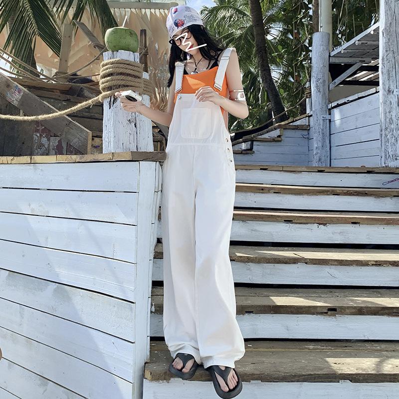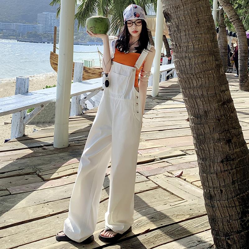 Четыре сезона Носимые женские американские повседневные чистые джинсовые комбинезоны, уменьшающие старение, универсальные прямые широкие брюки до пола