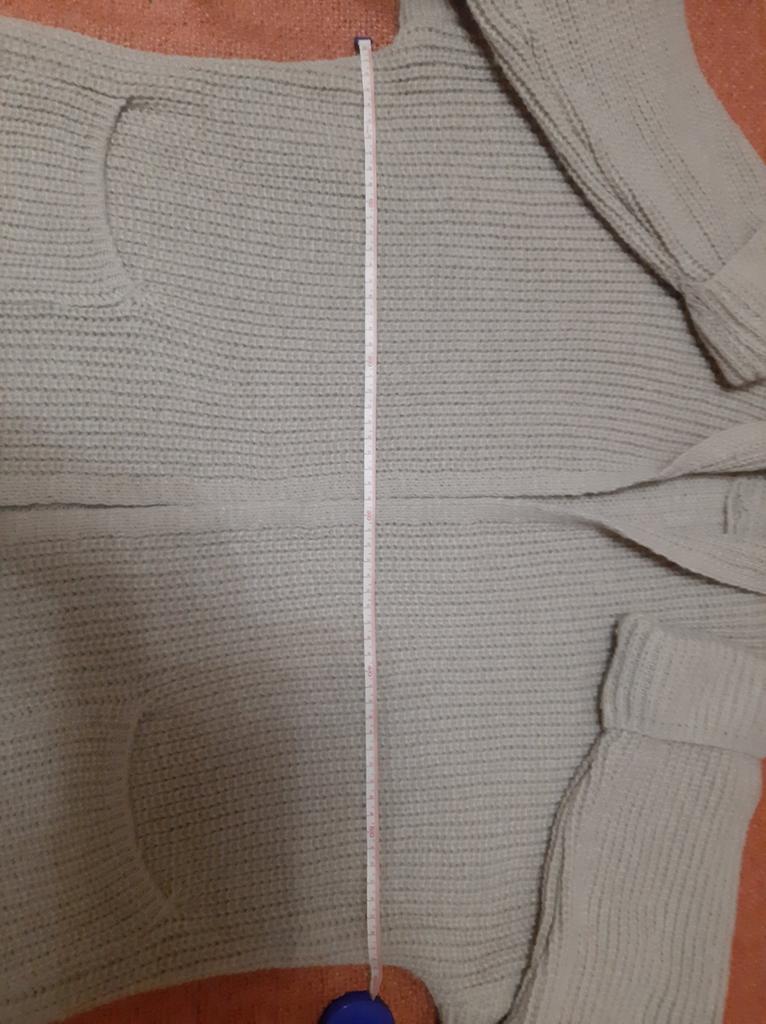 Заказом недовольна, очень неаккуратная работа, везде торчат нитки, воротник пришит вообще ужасно. Кардиган пришёл коротенький, зато рукава очень длинные, сама вязка не плотная. Полностью разочарованна