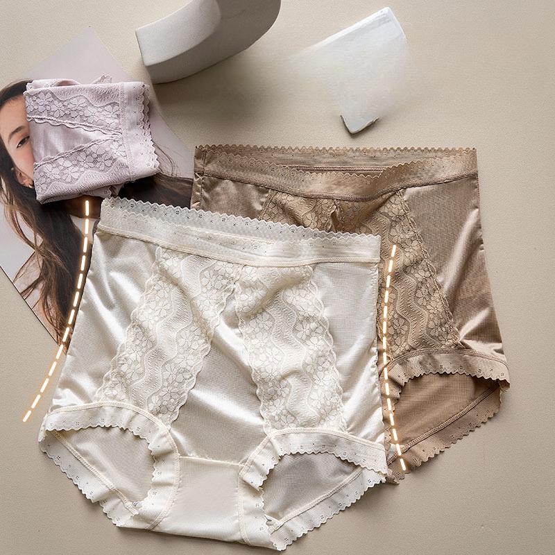 Нижнее белье Женские трусы больших размеров Эластичные компрессионные трусики с высокой талией Треугольные трусики Шелковое кружево с промежностью Бесшовное нижнее белье Дышащее