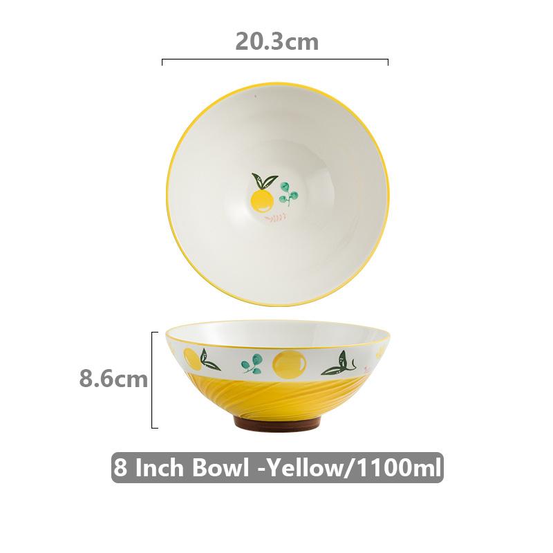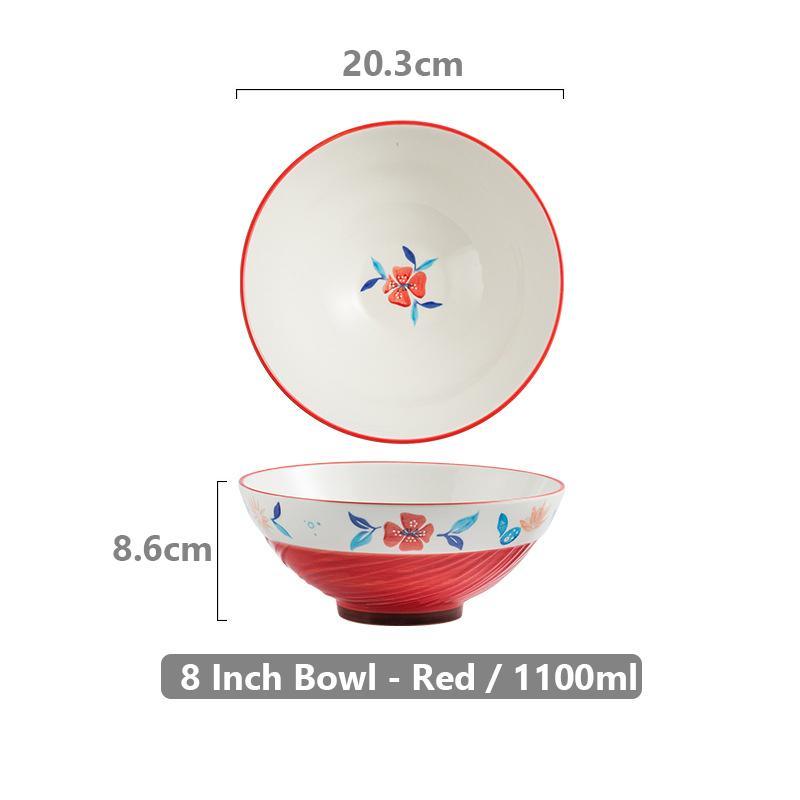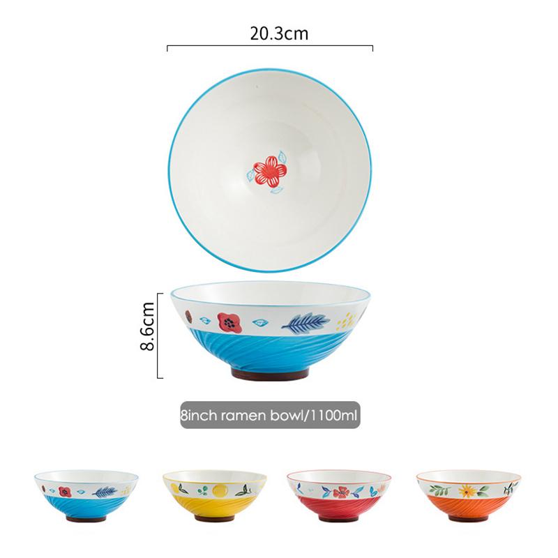 8-дюймовая расписанная вручную цветочная сервировочная миска для рамена, керамическая большая миска для салата, супа, хлопьев, миска для лапши быстрого приготовления, безопасная для микроволновой печи, 1100 мл