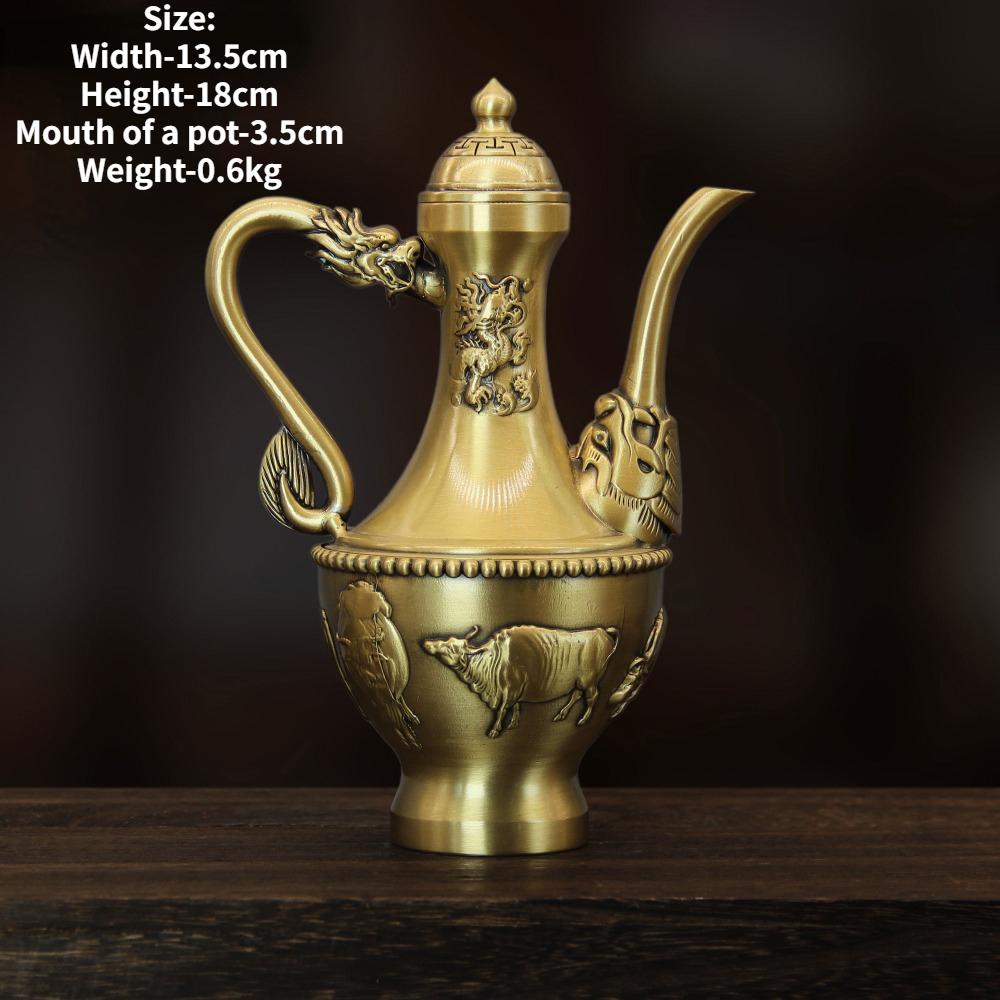 Латунный дракон, феникс, сто благословений, пять быков, восемь бессмертных, двойной дракон, медный горшок, практичное украшение для дома, бронзовая посуда