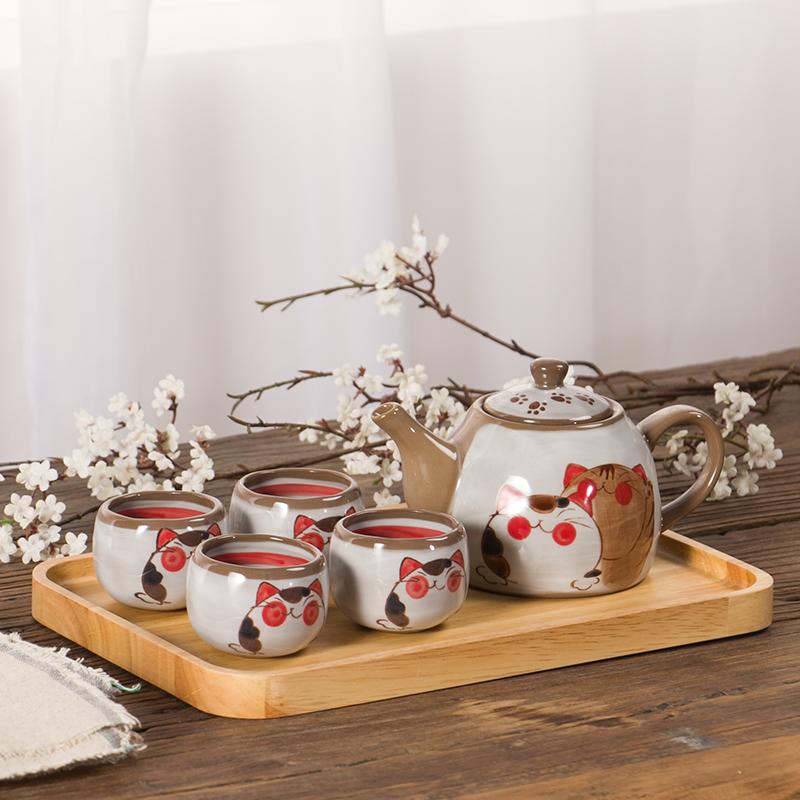 Керамический чайник, набор чашек для чая с изображением мультяшного кота, посуда для питья, чайник с фильтром (4 чашки + 1 чайник) Упаковка подарочной коробки