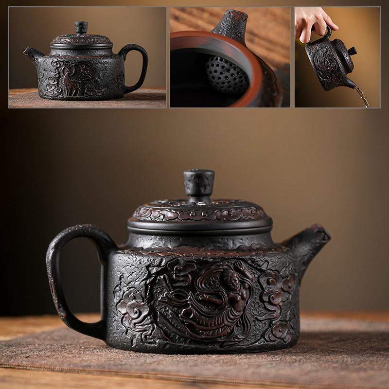 Чайник для заваривания в виде фиолетовой керамики «Сказка Цзяньшуй», расписанный вручную, старинный рельефный чайник, домашний чайник, чайный сервиз «Кунг-фу», чайник — купить товар онлайн с бесплатной доставкой по всему миру!