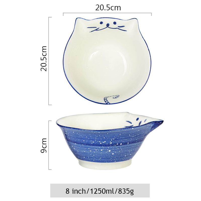 8-дюймовая миска с изображением котенка, керамическая миска для лапши, большая миска для рамена, китайская столовая посуда для ресторана, суп-салатница для кошек Maneki Neko