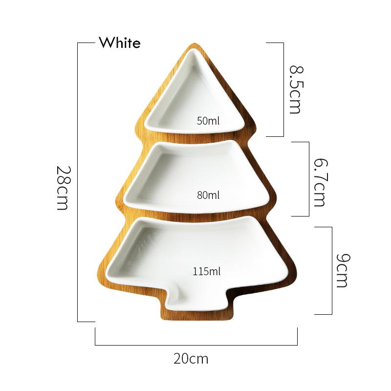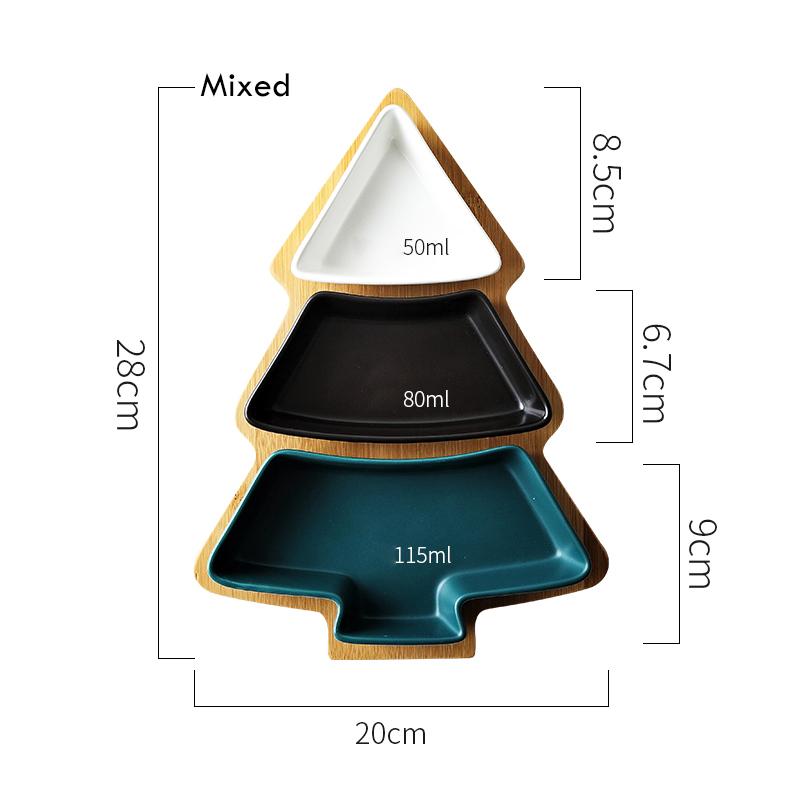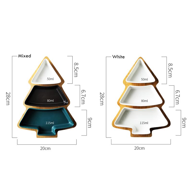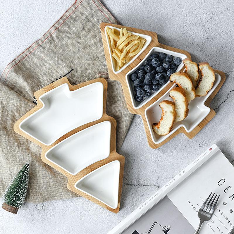 Керамические блюда для закусок с бамбуковым подносом, сервировочный поднос для торта, фруктов, десертная тарелка в виде дерева (3 блюдца + 1 поднос)