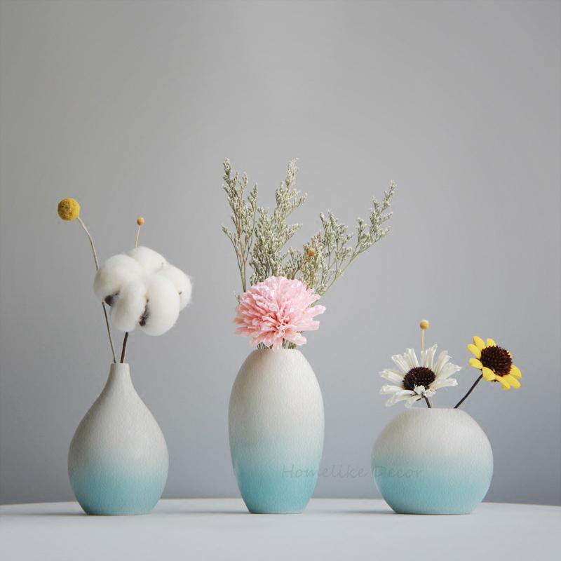 Современная лазурно-голубая ваза для цветов, цветная керамическая ваза для цветов, минималистичная настольная мини-ваза, центральный элемент домашнего декора