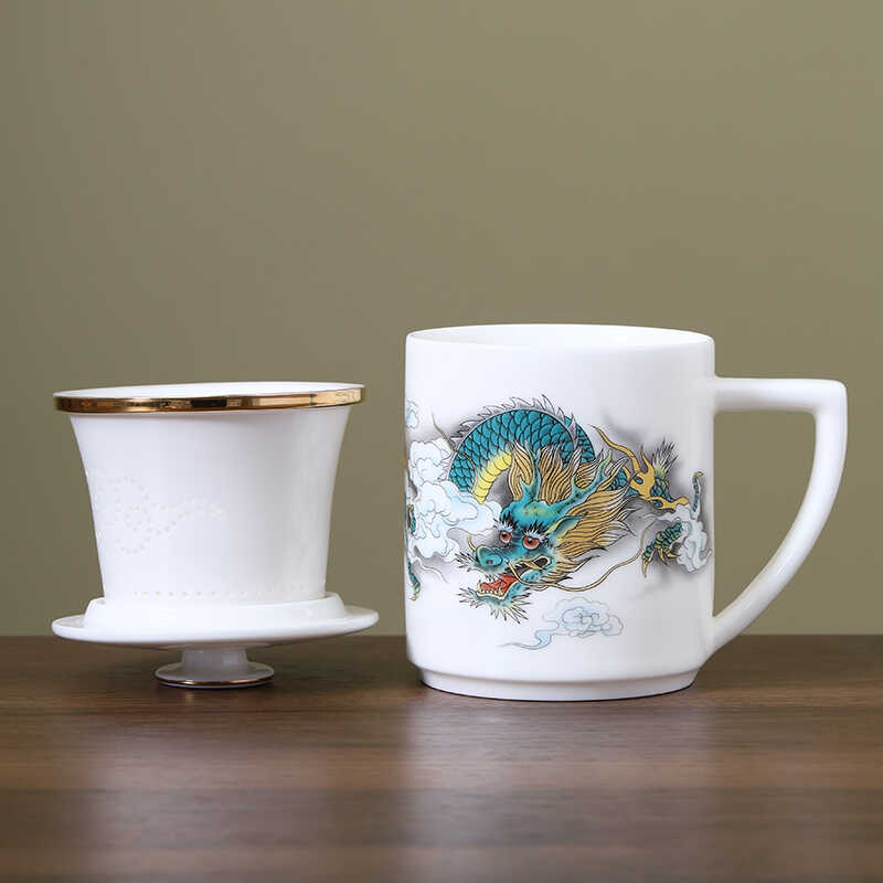 Керамическая чашка для чая 400 мл, бытовая кружка для разделения чая с фильтром и крышкой, офисная чашка-заварник для чая, чашка в китайском стиле, изящная чашка