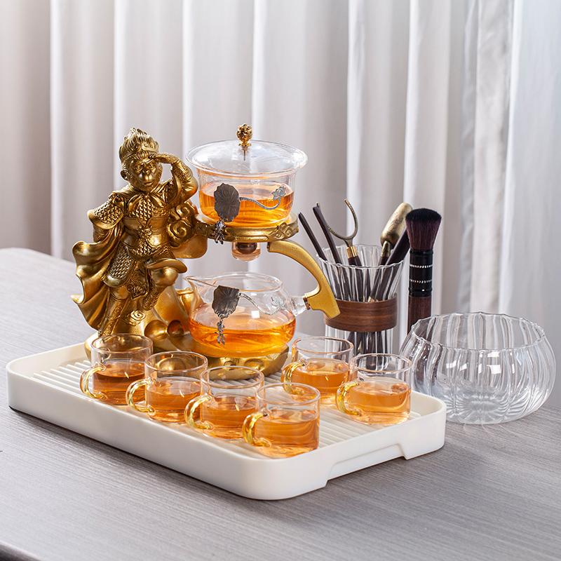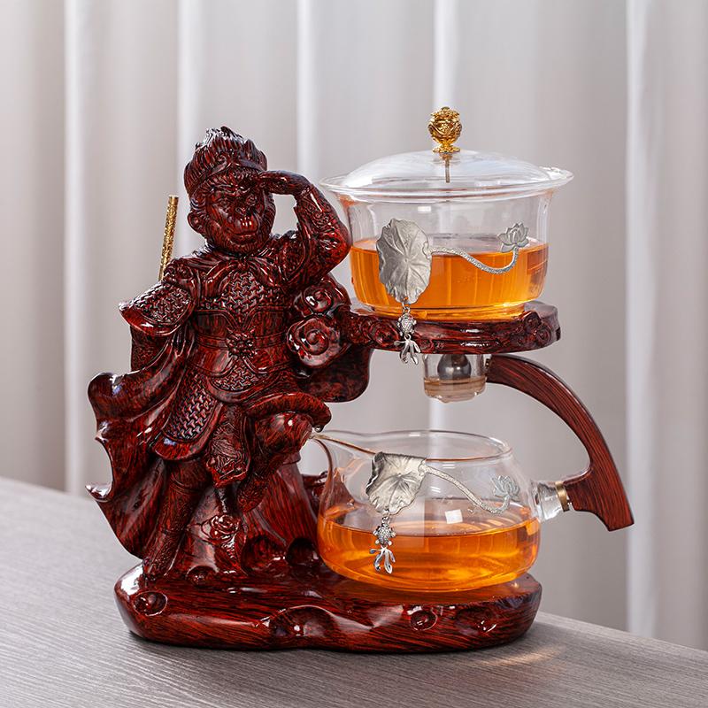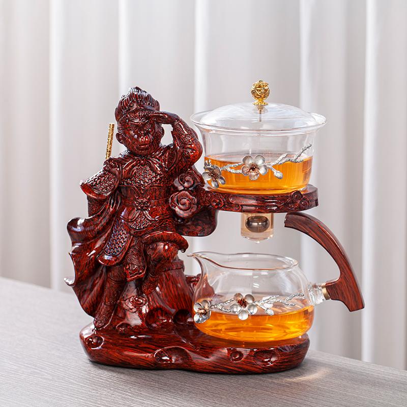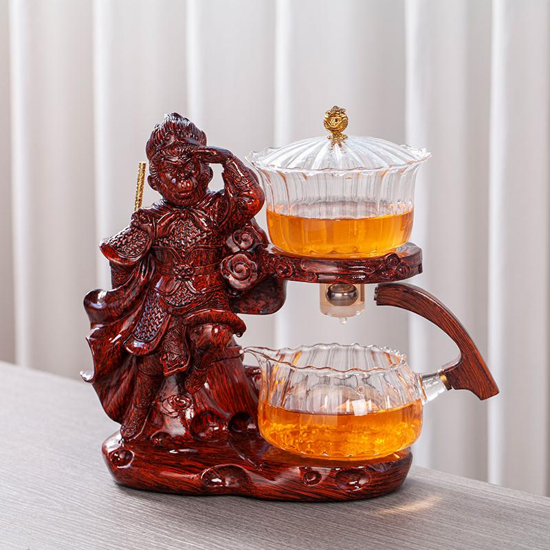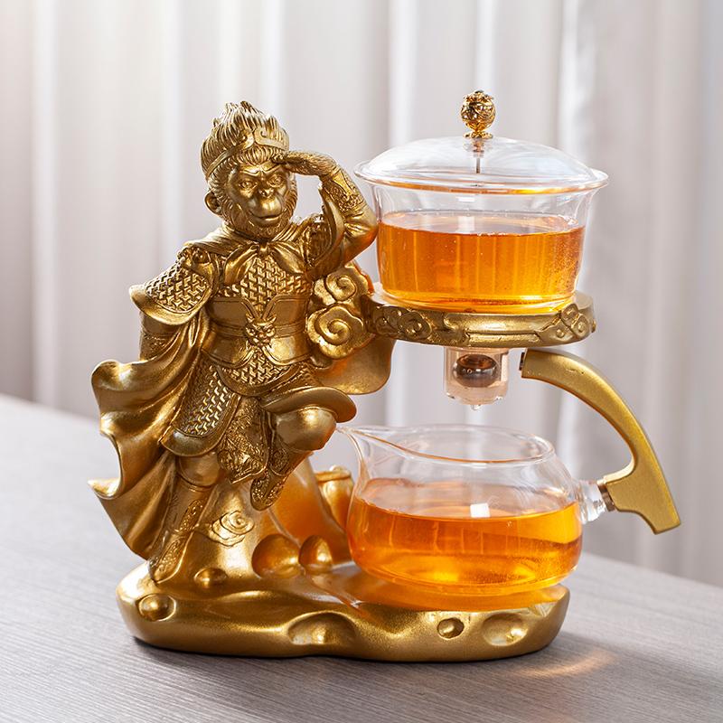 Творческий стеклянный чайный сервиз Monkey King, автоматический чайник, термостойкий чай Kungfu, питье чая, приготовление чая